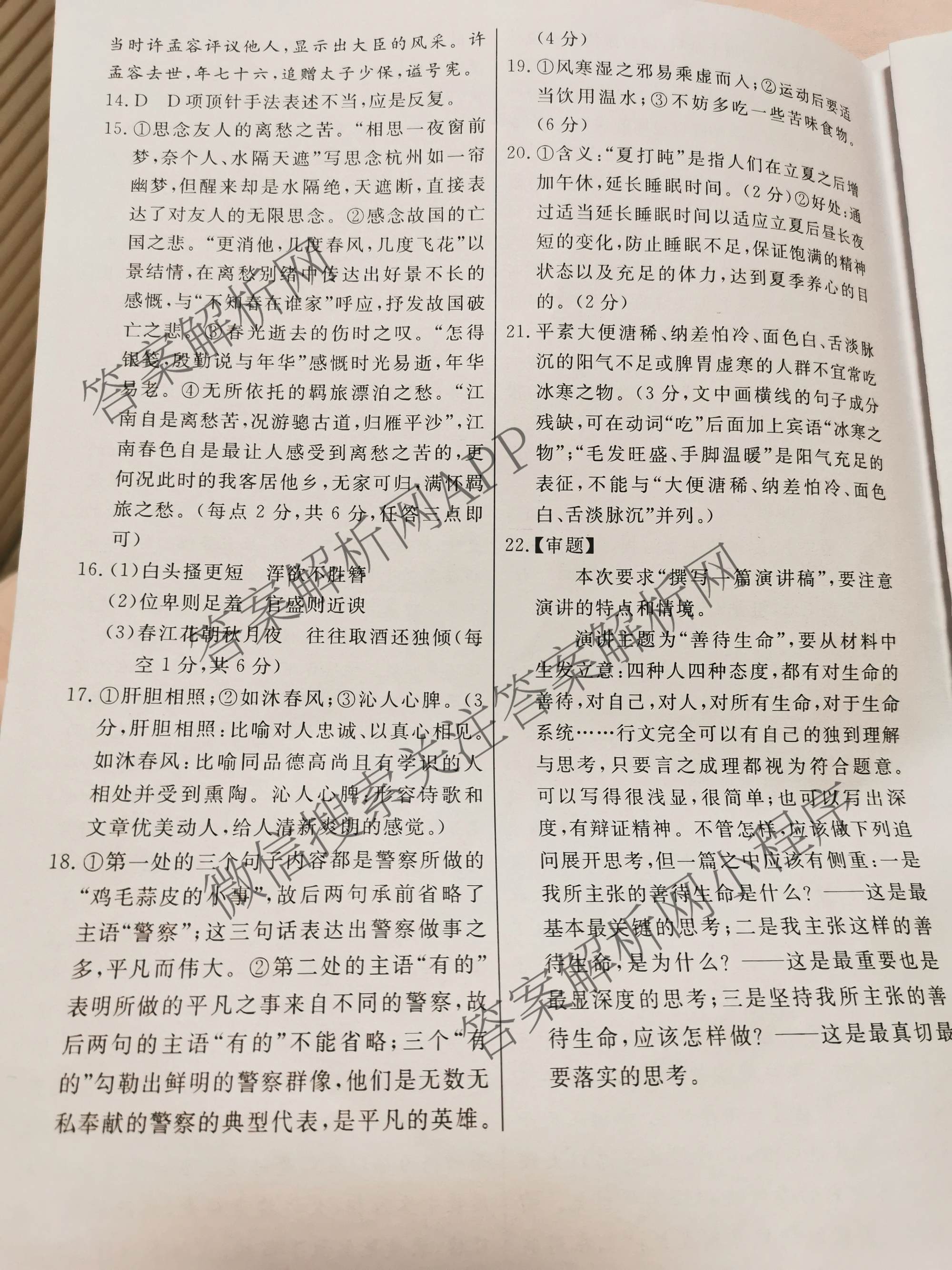 2023届高三总复习S3G名师原创模拟 语文(八)8答案
