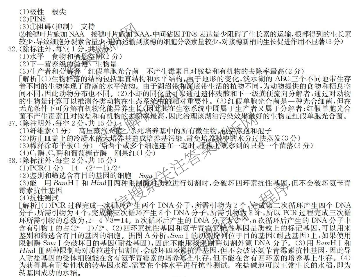 - 2023(全国高考分科综合卷) 生物 XL(一)1答案