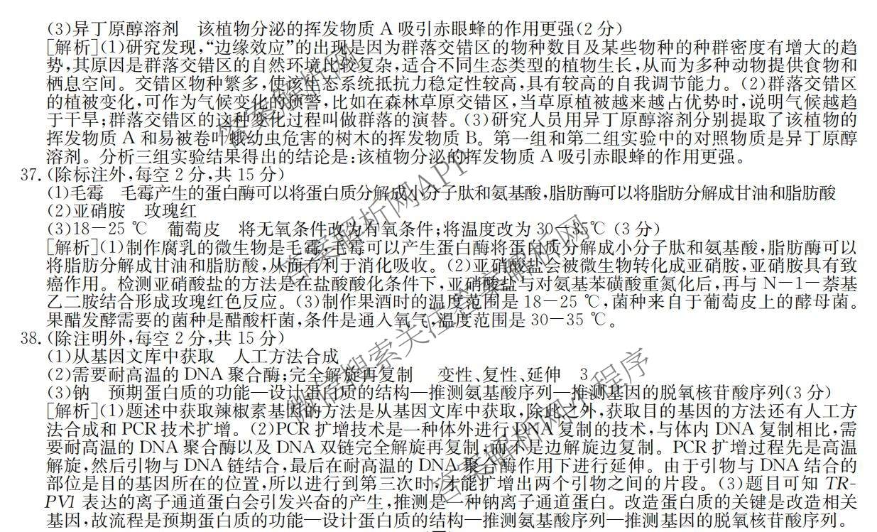 - 高三2023(全国高考分科综合卷) 生物 XL(三)3答案