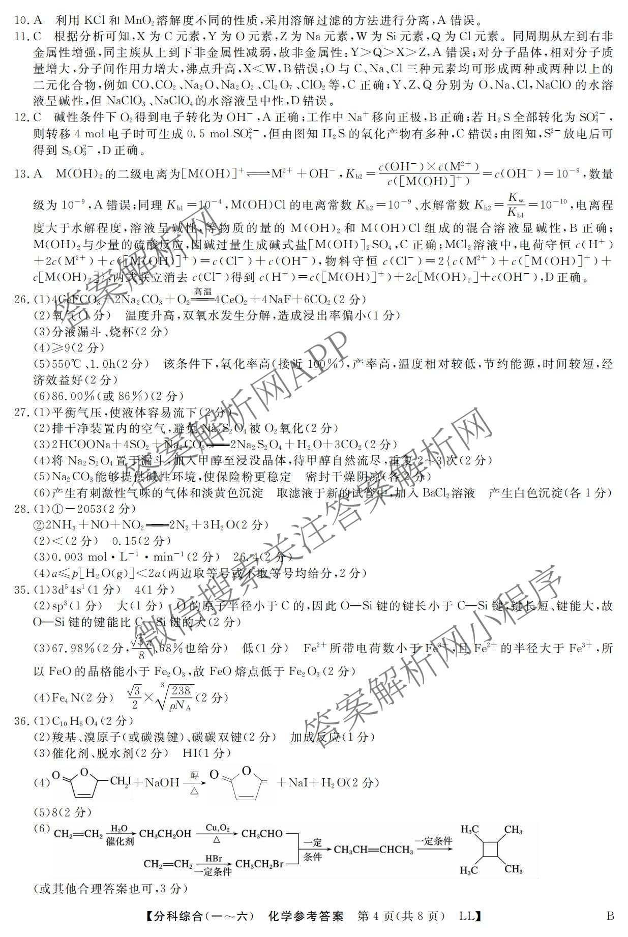 - (高三)2023全国高考分科综合卷 化学 LL B(三)3答案
