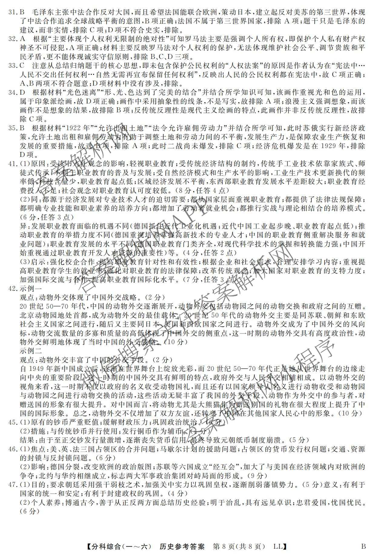 - [高三]2023[全国高考分科综合卷] 历史 LL B(六)6答案