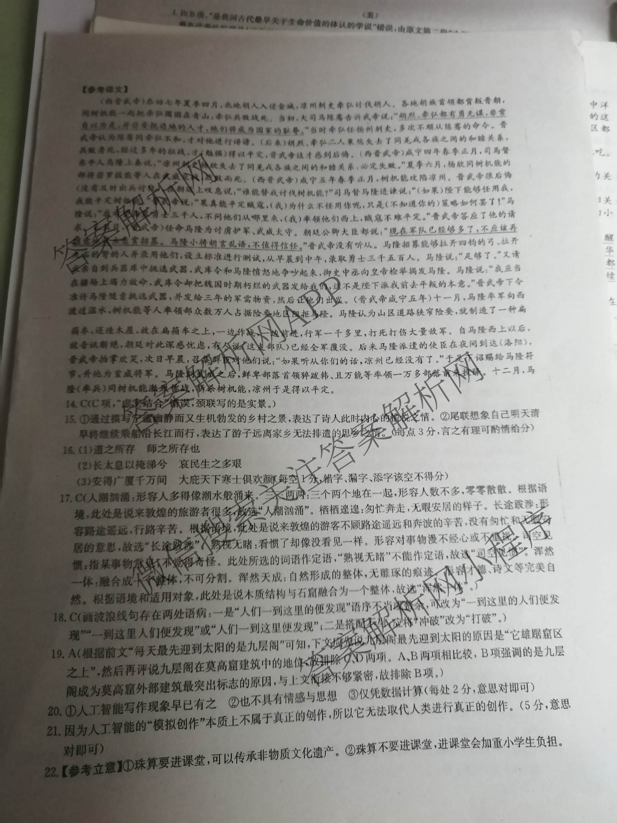 - (高三)2023[全国高考分科综合卷] 语文 LL (三)3答案