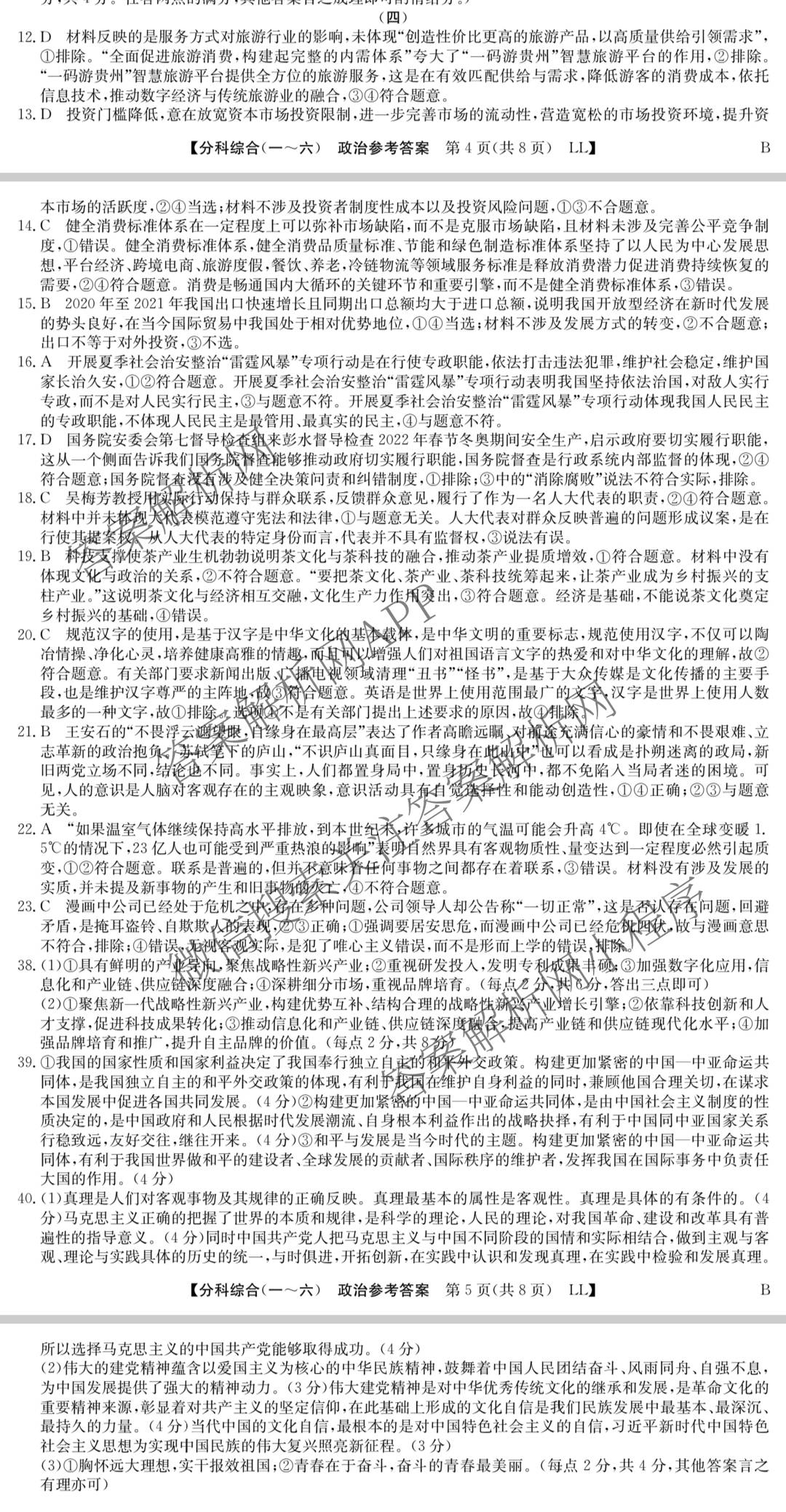 - 2023(全国高考分科综合卷) 政治 LL B(四)4答案