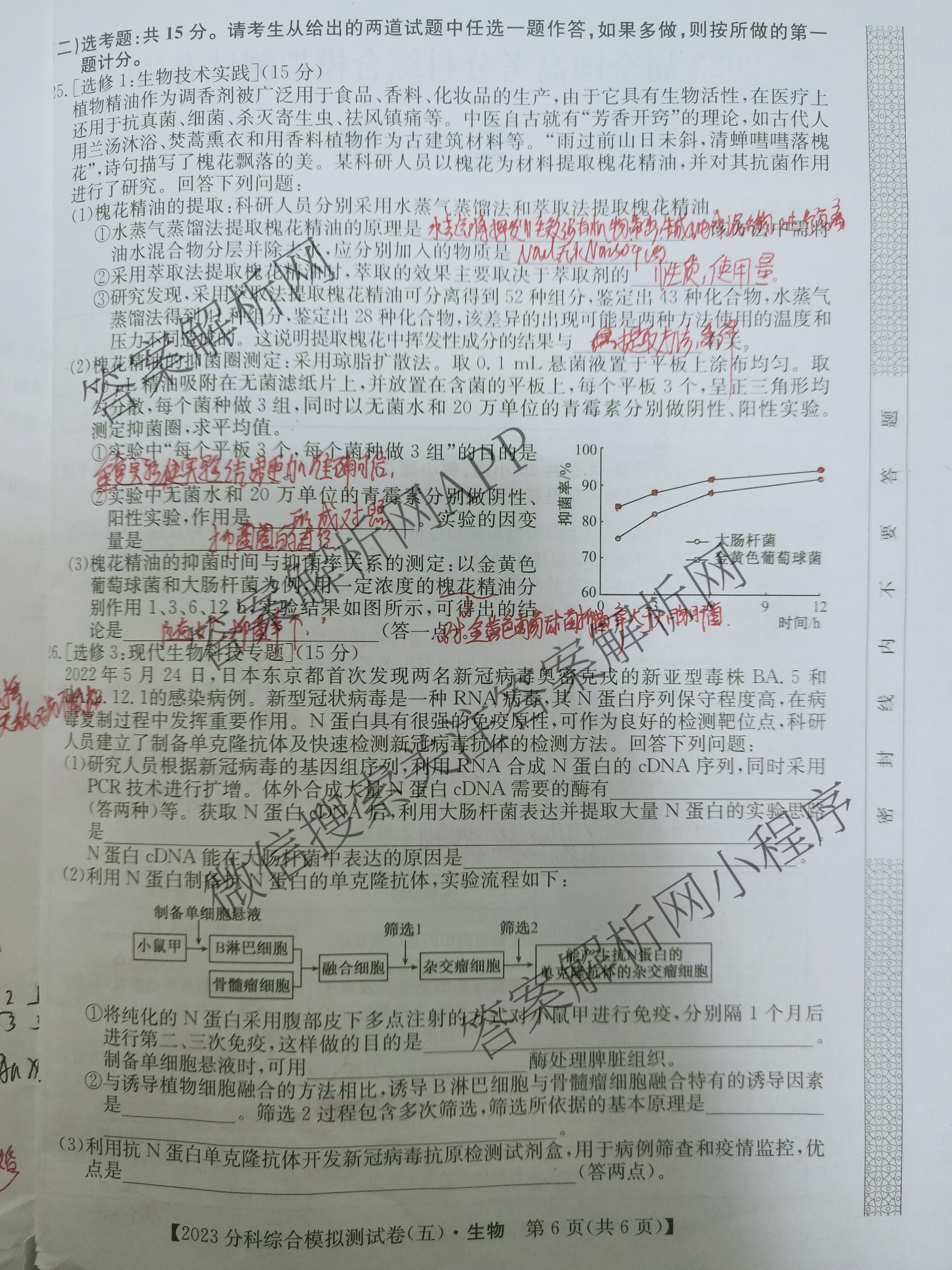 2023届全国高考分科综合模拟测试卷(五)生物试题,目前分科卷答案网已经汇总了2023届全国高考分科综合模拟测试卷(五)生物试题的各科答案和试卷,获取更多全国高考分科综合模拟测试卷答案解析,请在关注本站。
