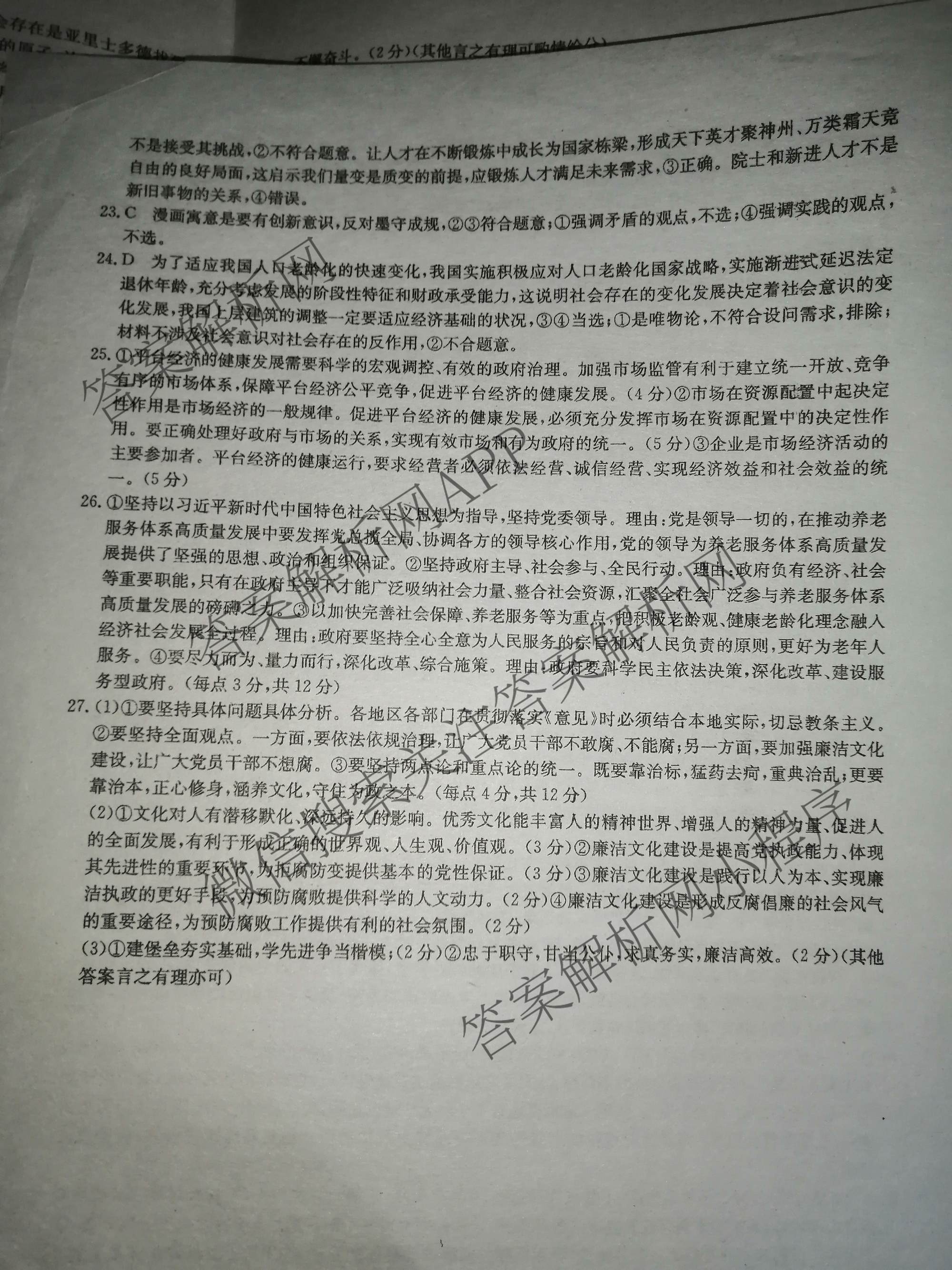 - 2023(全国高考分科综合卷) 政治 LL B(六)6答案