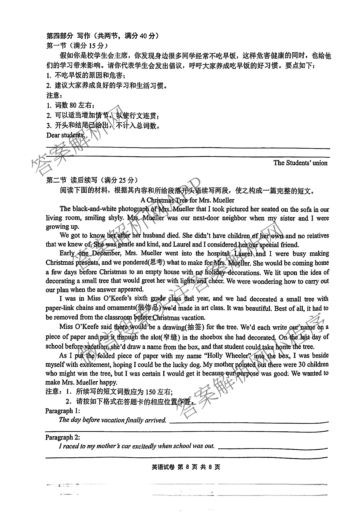 2022年江南十校高一分科诊断摸底联考英语试题,目前分科卷答案网已经汇总了2022年江南十校高一分科诊断摸底联考英语试题的各科答案和试卷,获取更多江南十校答案解析,请在关注本站。