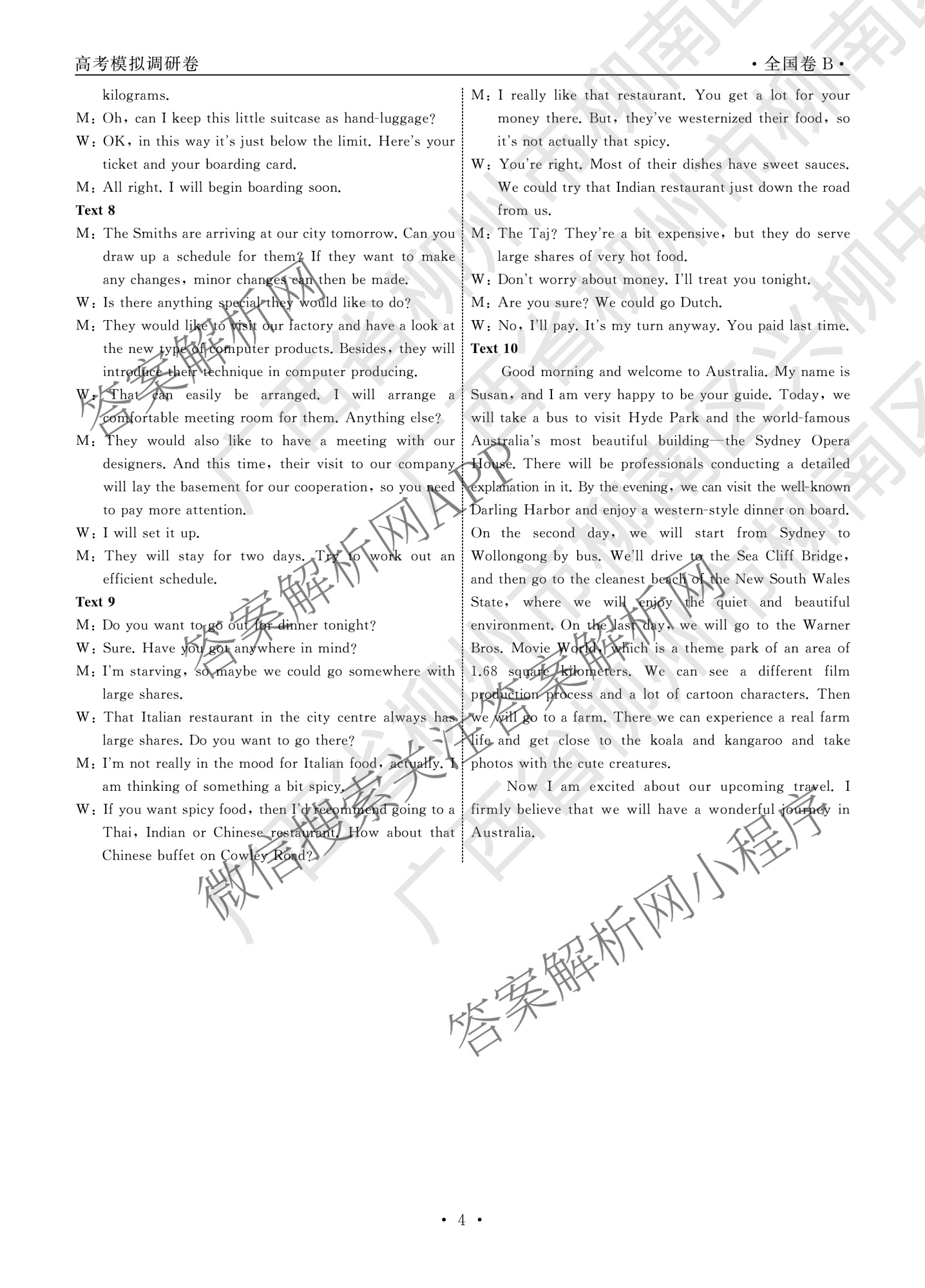 2022~2023[衡水名师卷]·高考模拟调研卷 英语 全国卷B(二)2答案