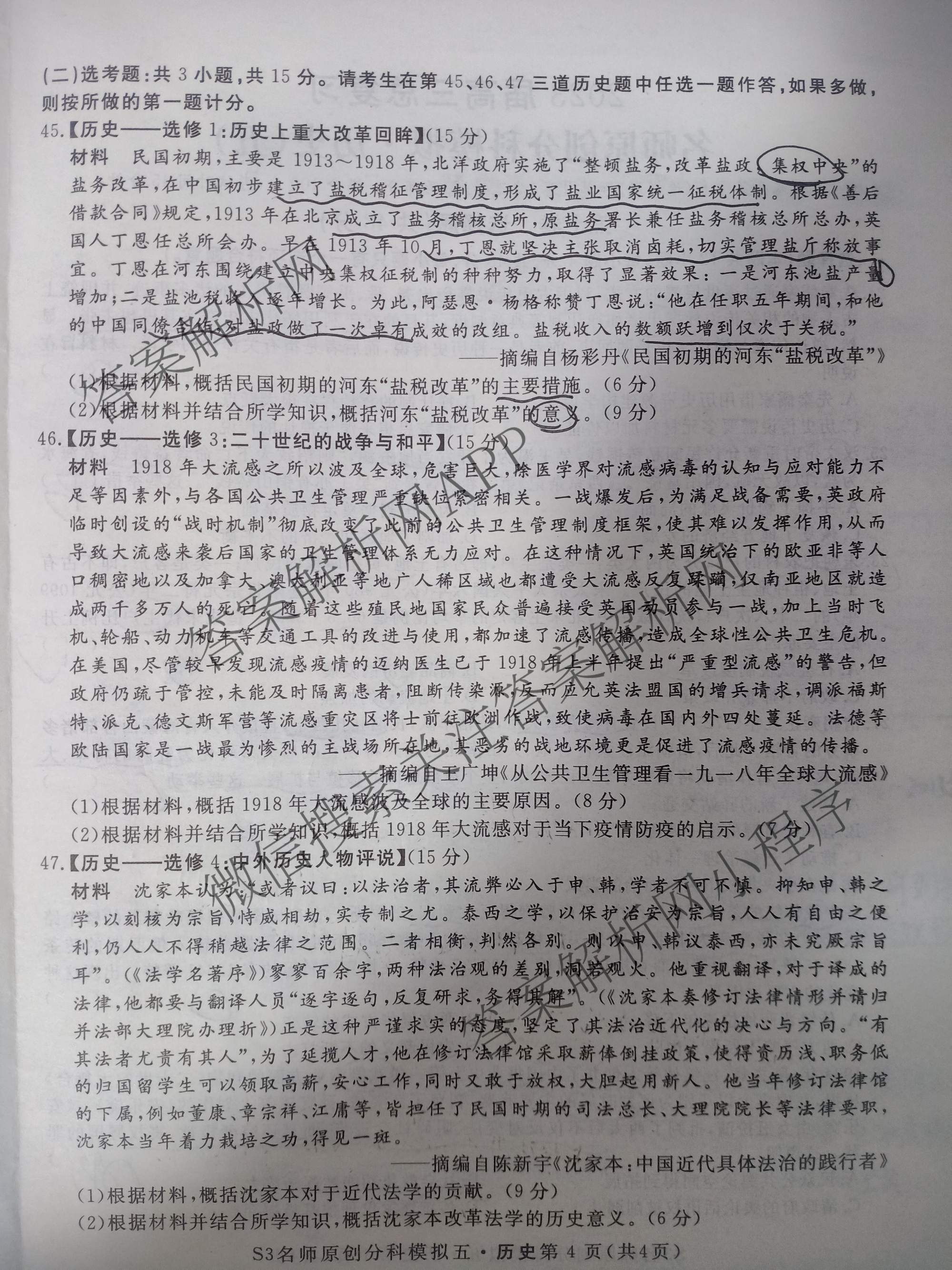 - (高三)2023届总复习S3名师原创模拟 历史(新S3)(五)5答案