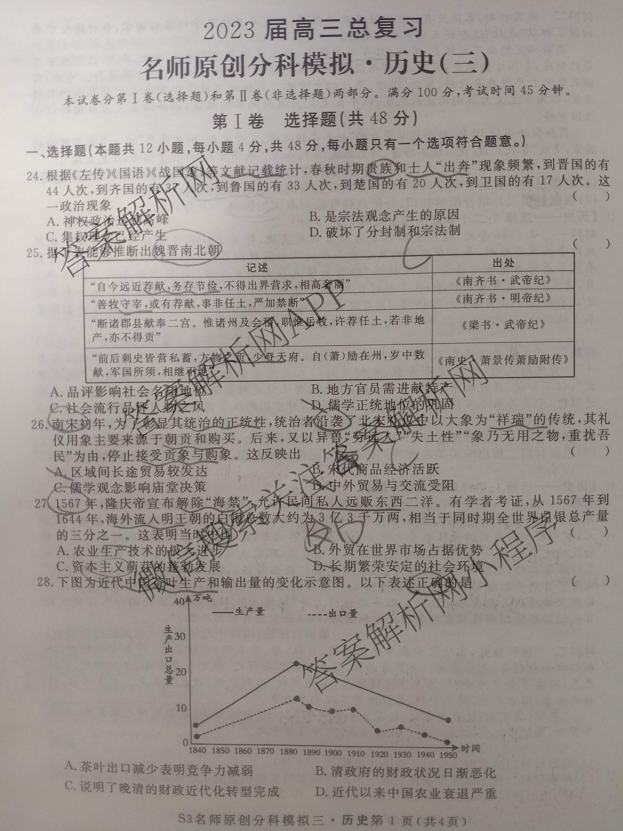 2023届高三总复习·S3名师原创模拟历史(三)3试题,目前分科卷答案网已经汇总了2023届高三总复习·S3名师原创模拟历史(三)3试题的各科答案和试卷,获取更多高三总复习·名师原创模拟答案解析,请在关注本站。