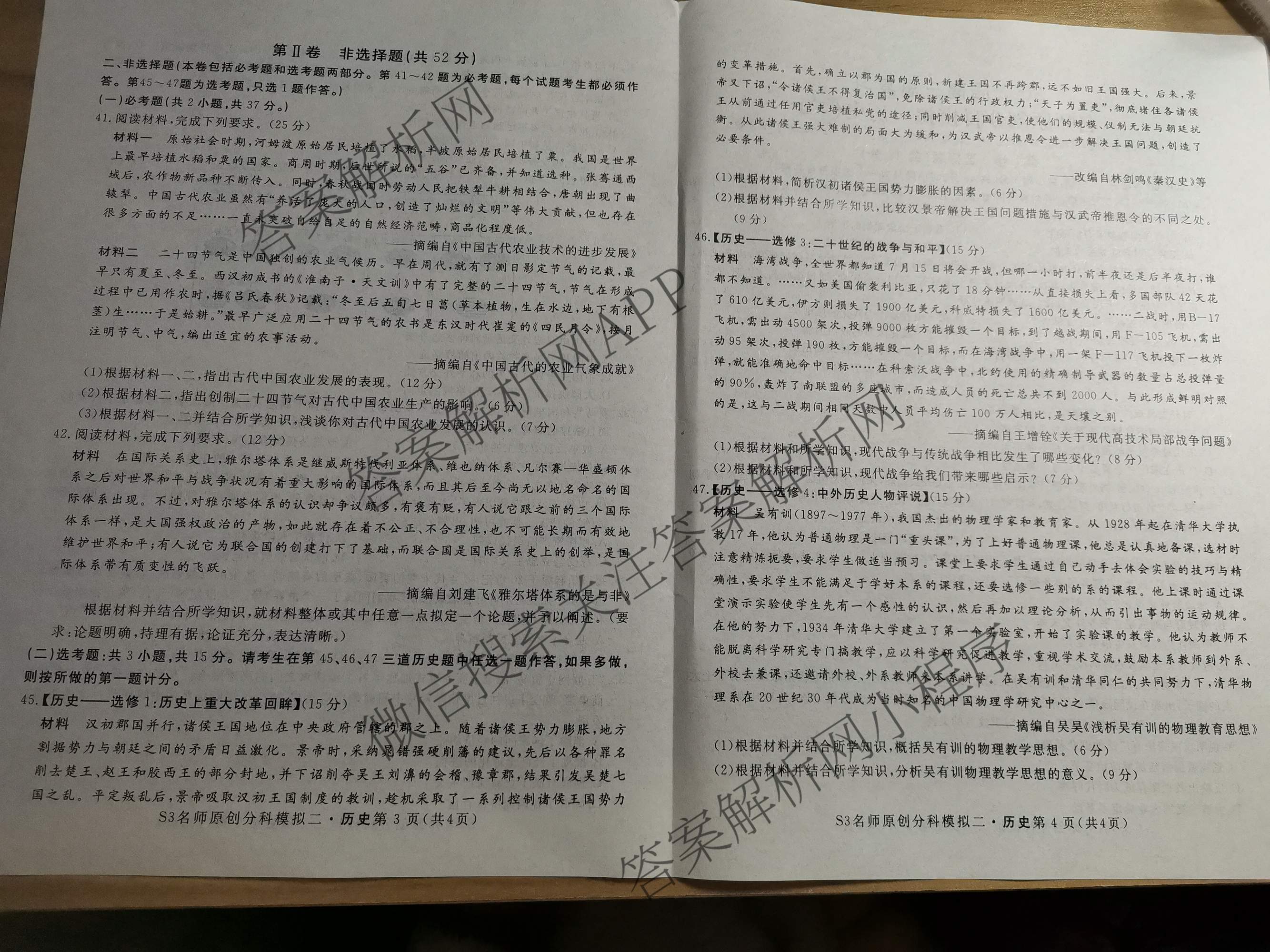 - 2023届[高三]总复习·S3名师原创模拟历史(二)2答案