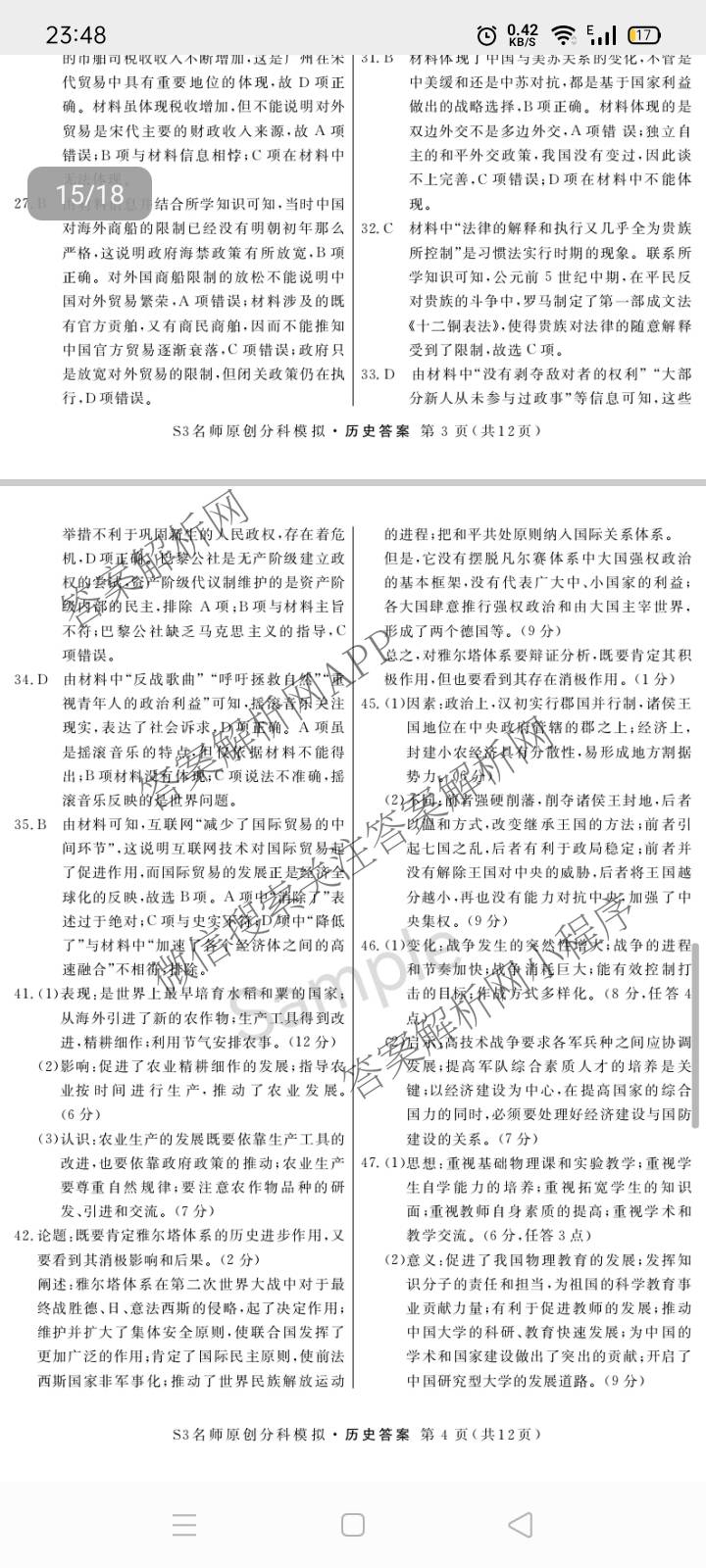 2023届高三总复习·S3名师原创模拟历史(二)2答案,目前分科卷答案网已经汇总了2023届高三总复习·S3名师原创模拟历史(二)2答案的各科答案和试卷,获取更多高三总复习·名师原创模拟答案解析,请在关注本站。