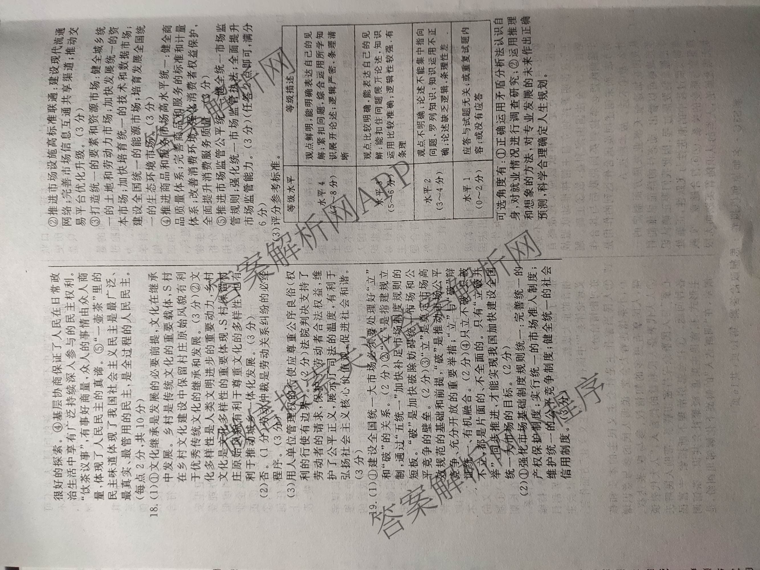 - 2023届(高三)总复习S3名师原创模拟 政治(新S3)(四)4答案