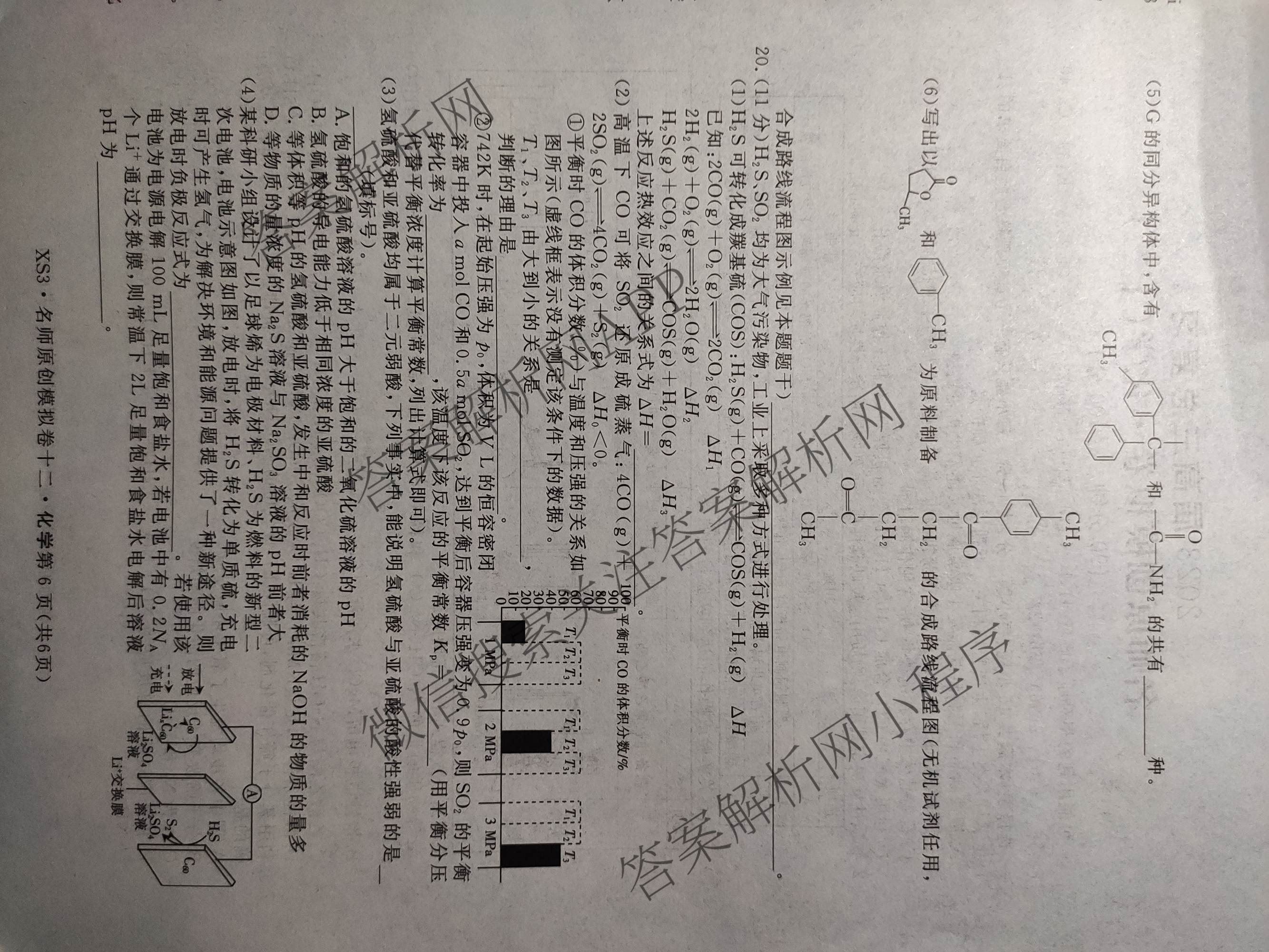 2023届高三总复习XS3名师原创模拟 化学 XS3(十二)12试题