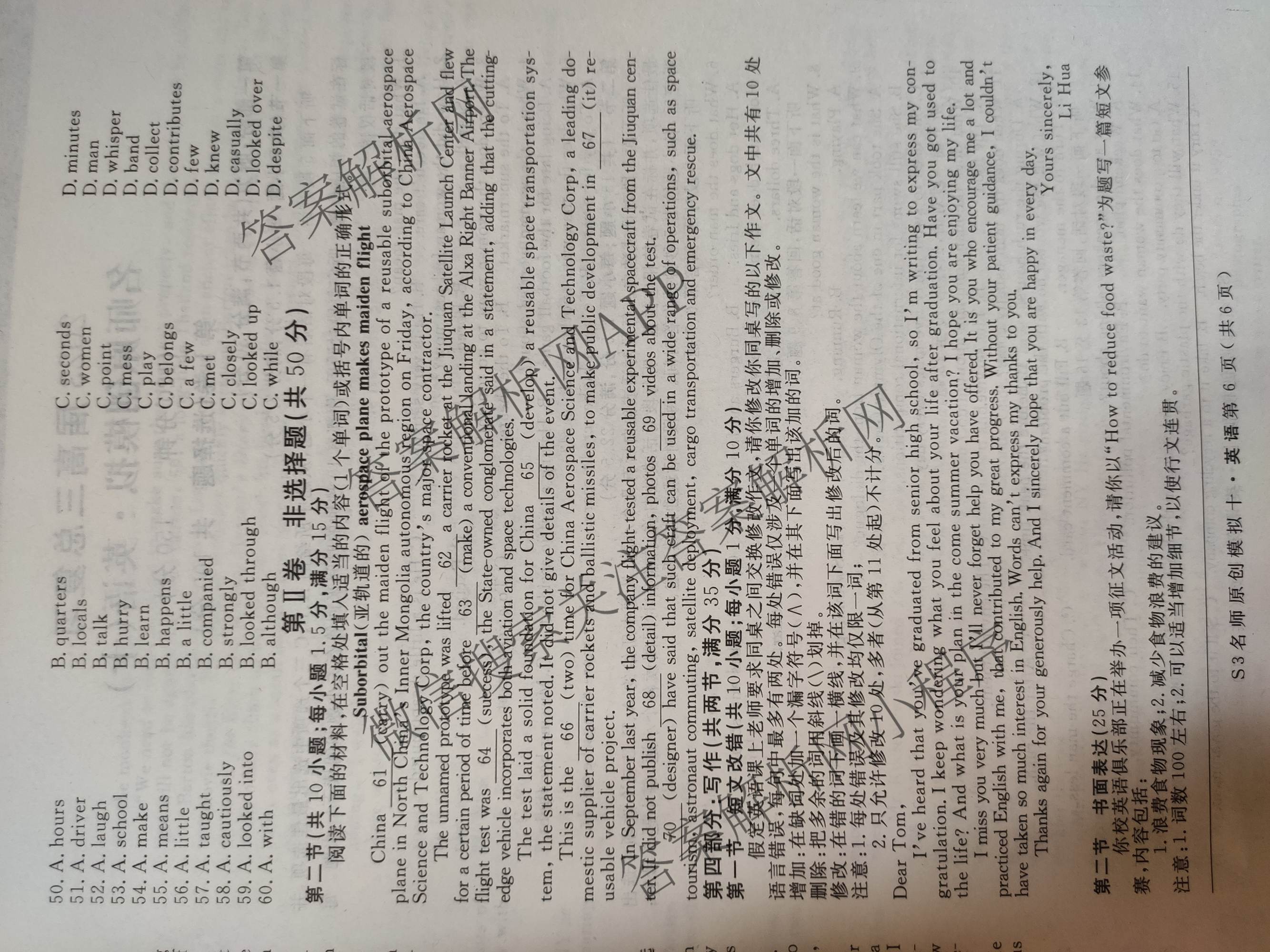 2023届高三总复习S3名师原创模拟 英语(十)10试题