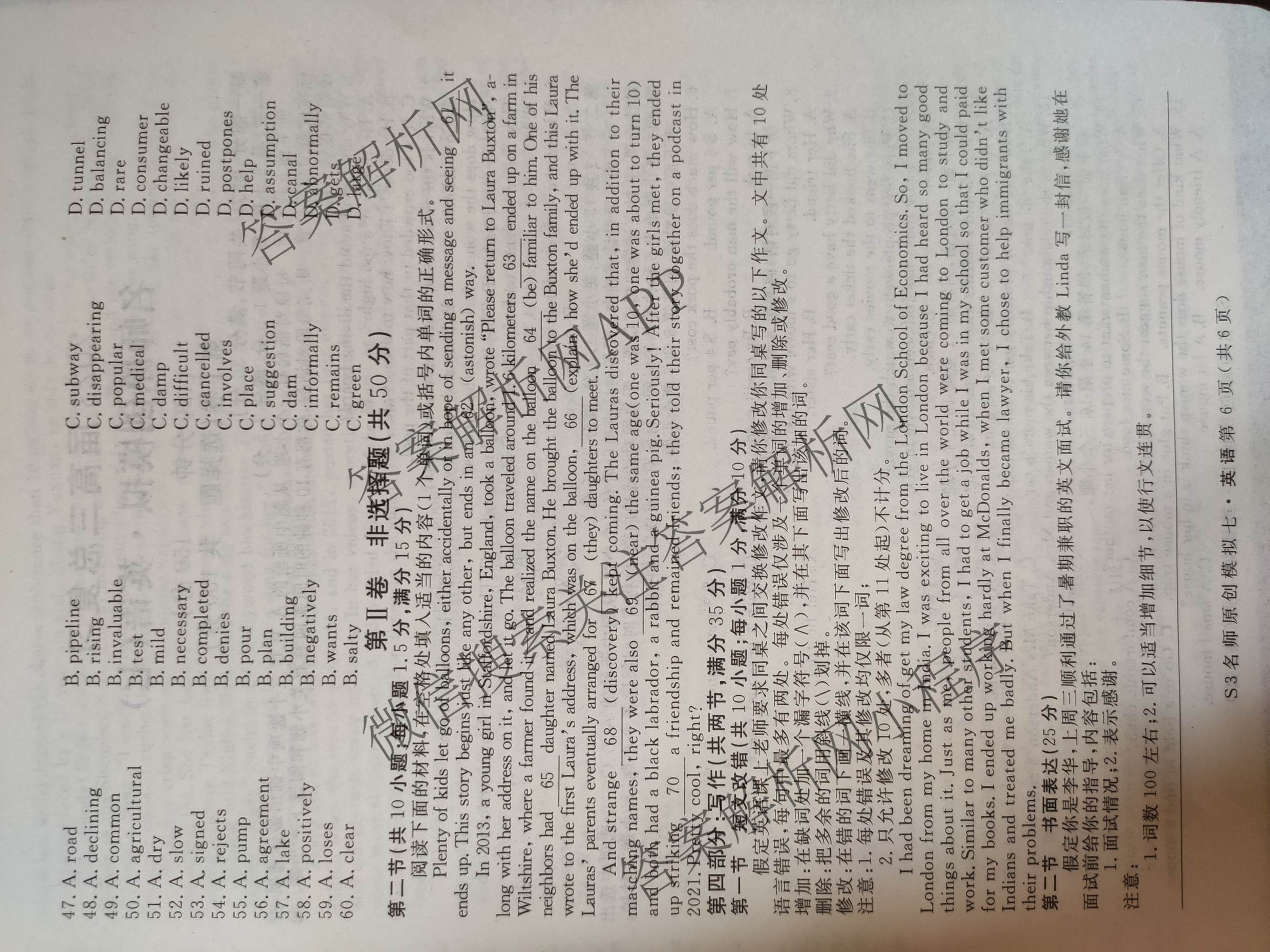 2023届高三总复习·S3名师原创模拟 英语(七)7试题,目前分科卷答案网已经汇总了2023届高三总复习·S3名师原创模拟 英语(七)7试题的各科答案和试卷,获取更多高三总复习·名师原创模拟答案解析,请在关注本站。