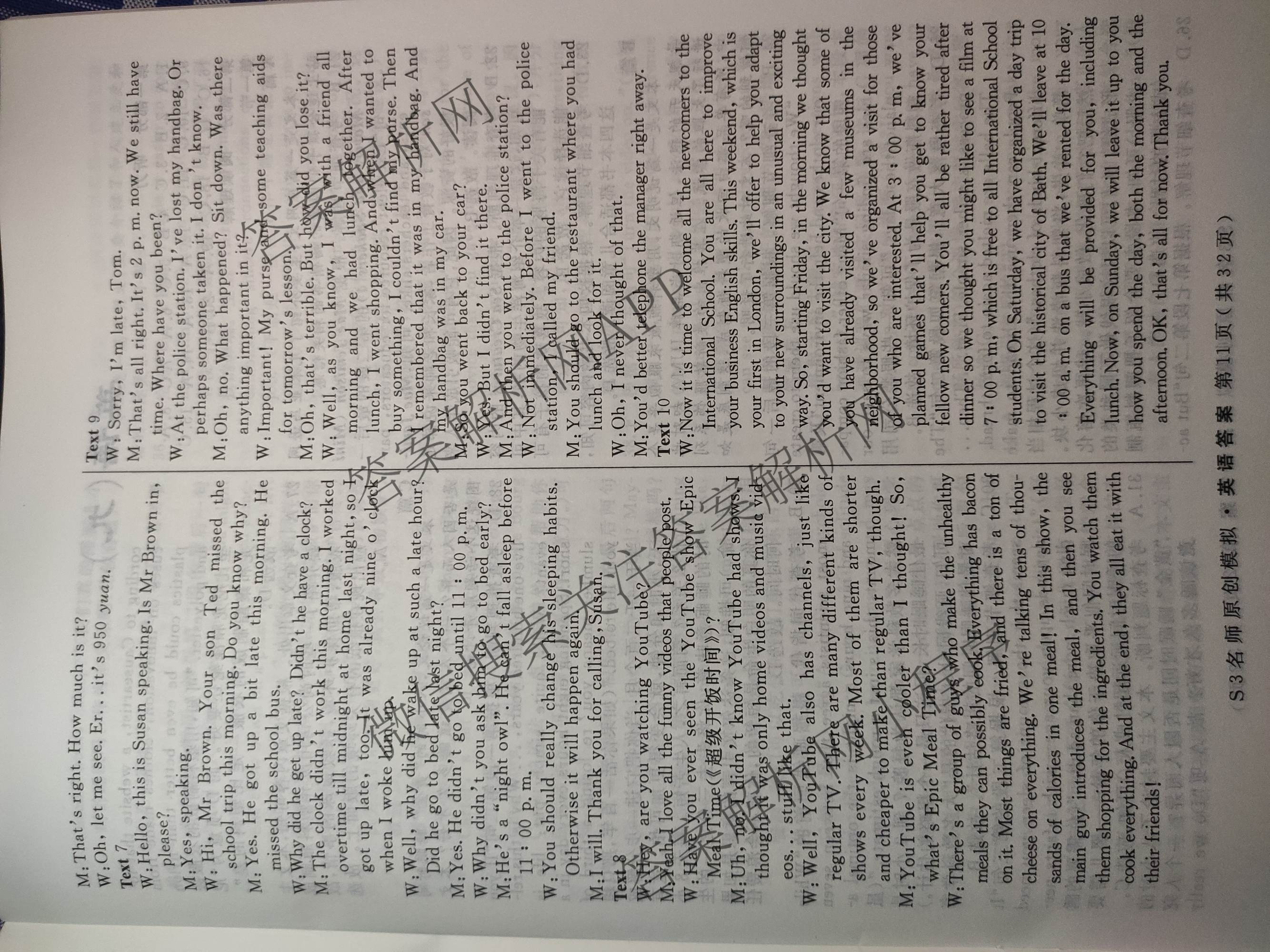 2023届高三总复习S3名师原创模拟 英语(八)8答案