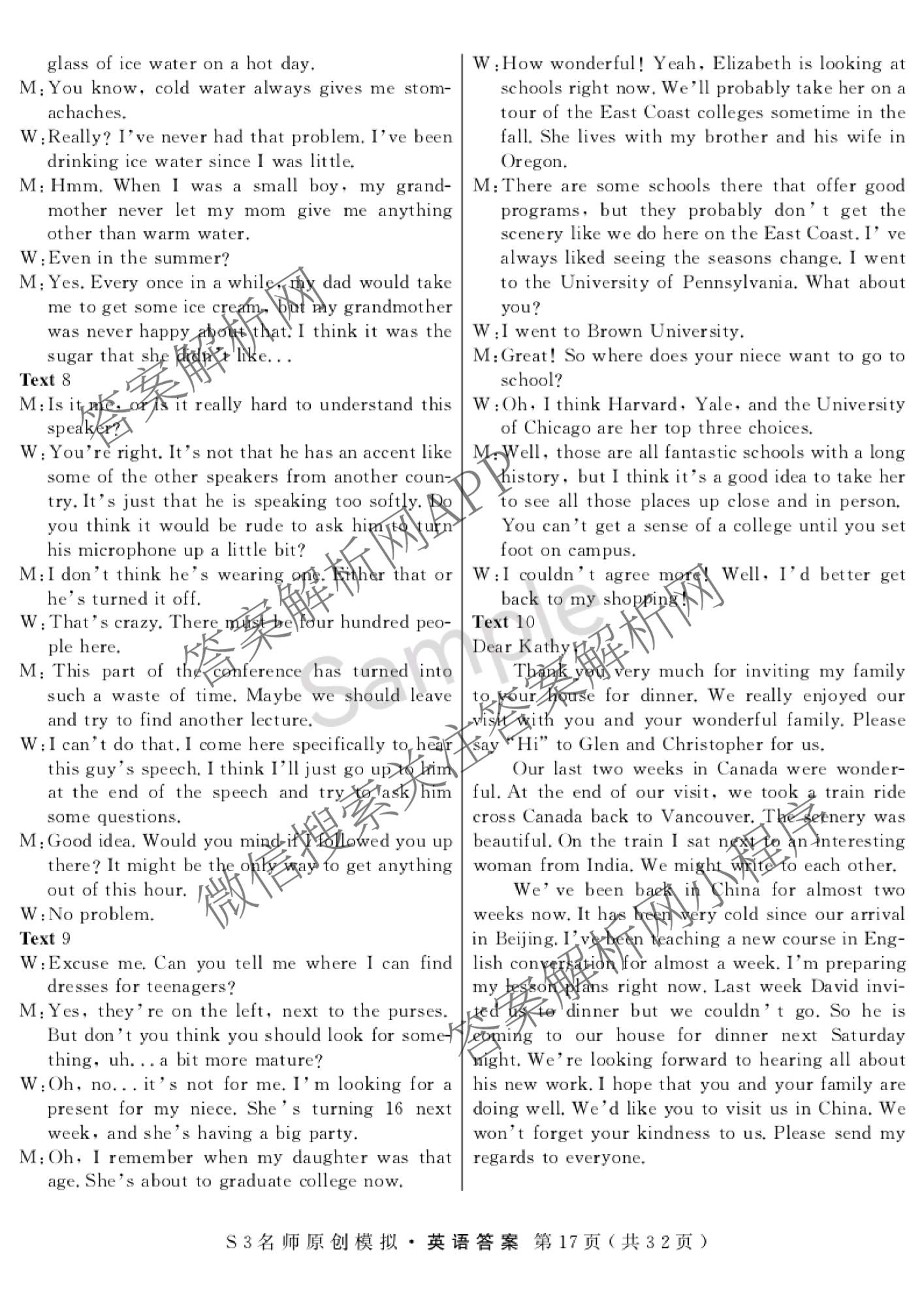 - [高三]2023届总复习·S3名师原创模拟 英语(三)3答案