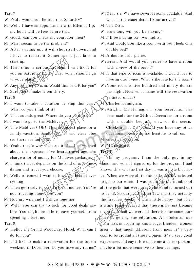 (高三)2023届总复习·S3名师原创模拟 英语(二)2答案