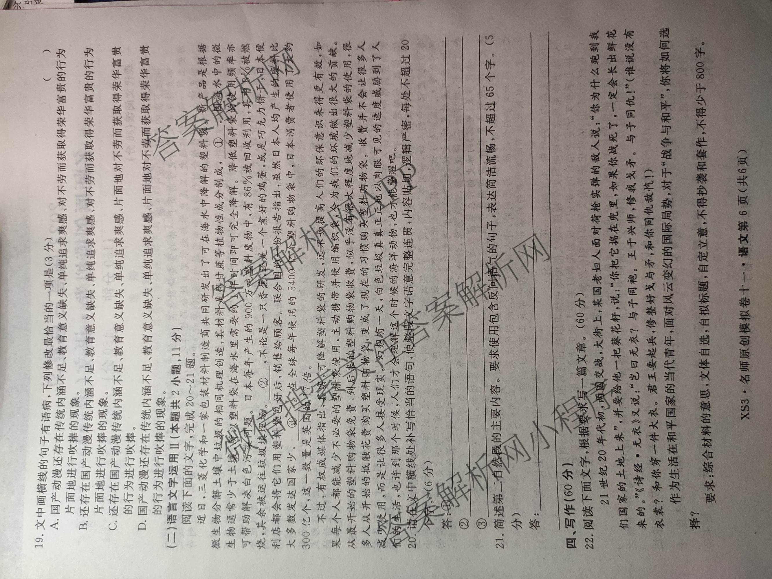 2023届高三总复习·XS3G名师原创模拟 语文(十一)11试题,目前分科卷答案网已经汇总了2023届高三总复习·XS3G名师原创模拟 语文(十一)11试题的各科答案和试卷,获取更多高三总复习·名师原创模拟答案解析,请在关注本站。