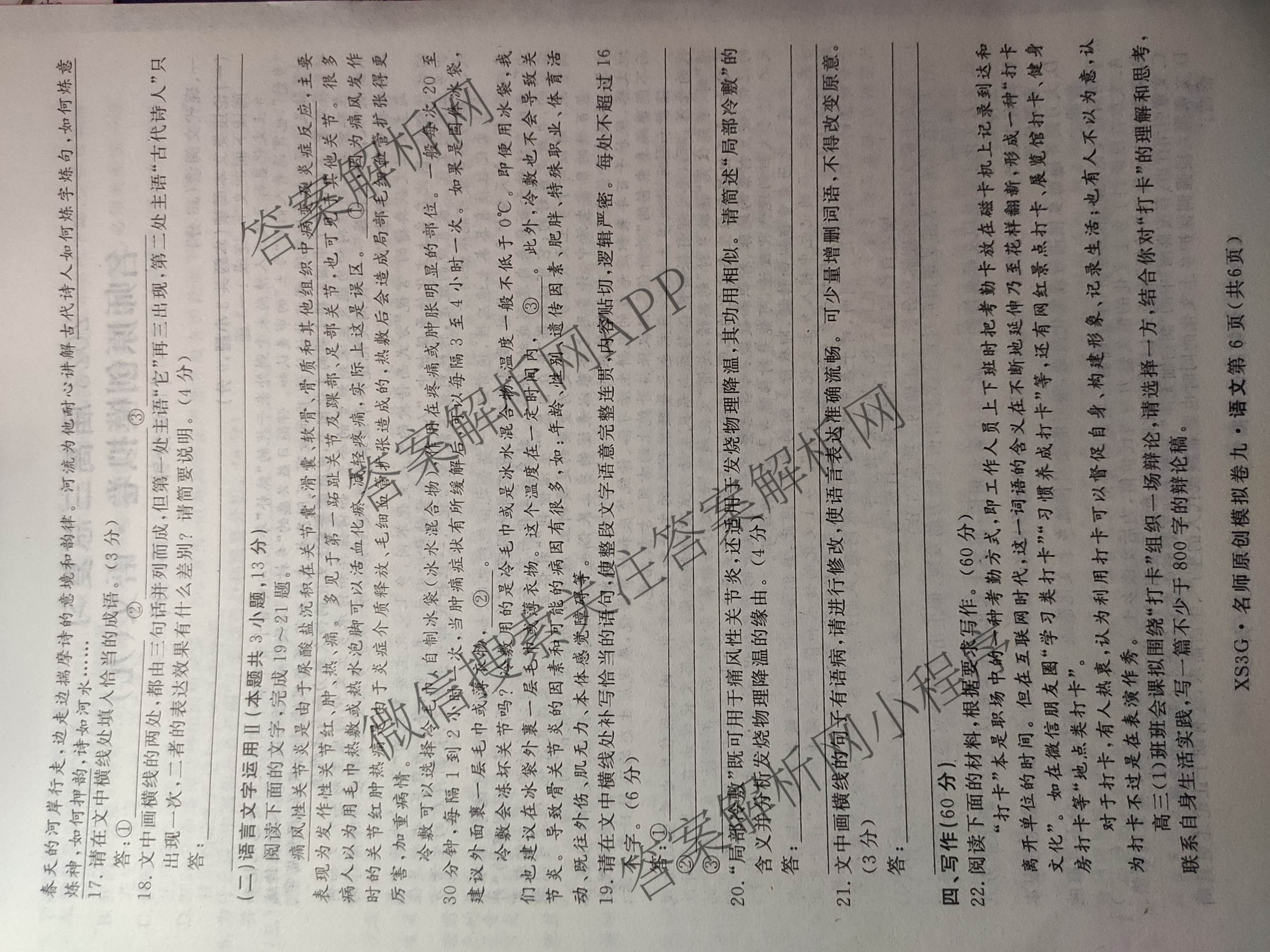 2023届高三总复习·XS3G名师原创模拟 语文(九)9试题,目前分科卷答案网已经汇总了2023届高三总复习·XS3G名师原创模拟 语文(九)9试题的各科答案和试卷,获取更多高三总复习·名师原创模拟答案解析,请在关注本站。