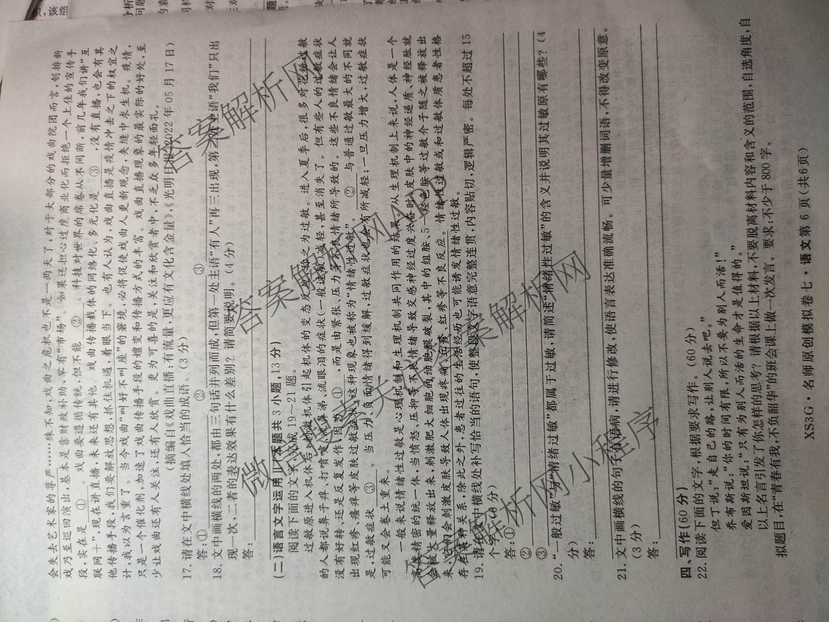 2023届高三总复习·XS3G名师原创模拟 语文(七)7试题,目前分科卷答案网已经汇总了2023届高三总复习·XS3G名师原创模拟 语文(七)7试题的各科答案和试卷,获取更多高三总复习·名师原创模拟答案解析,请在关注本站。