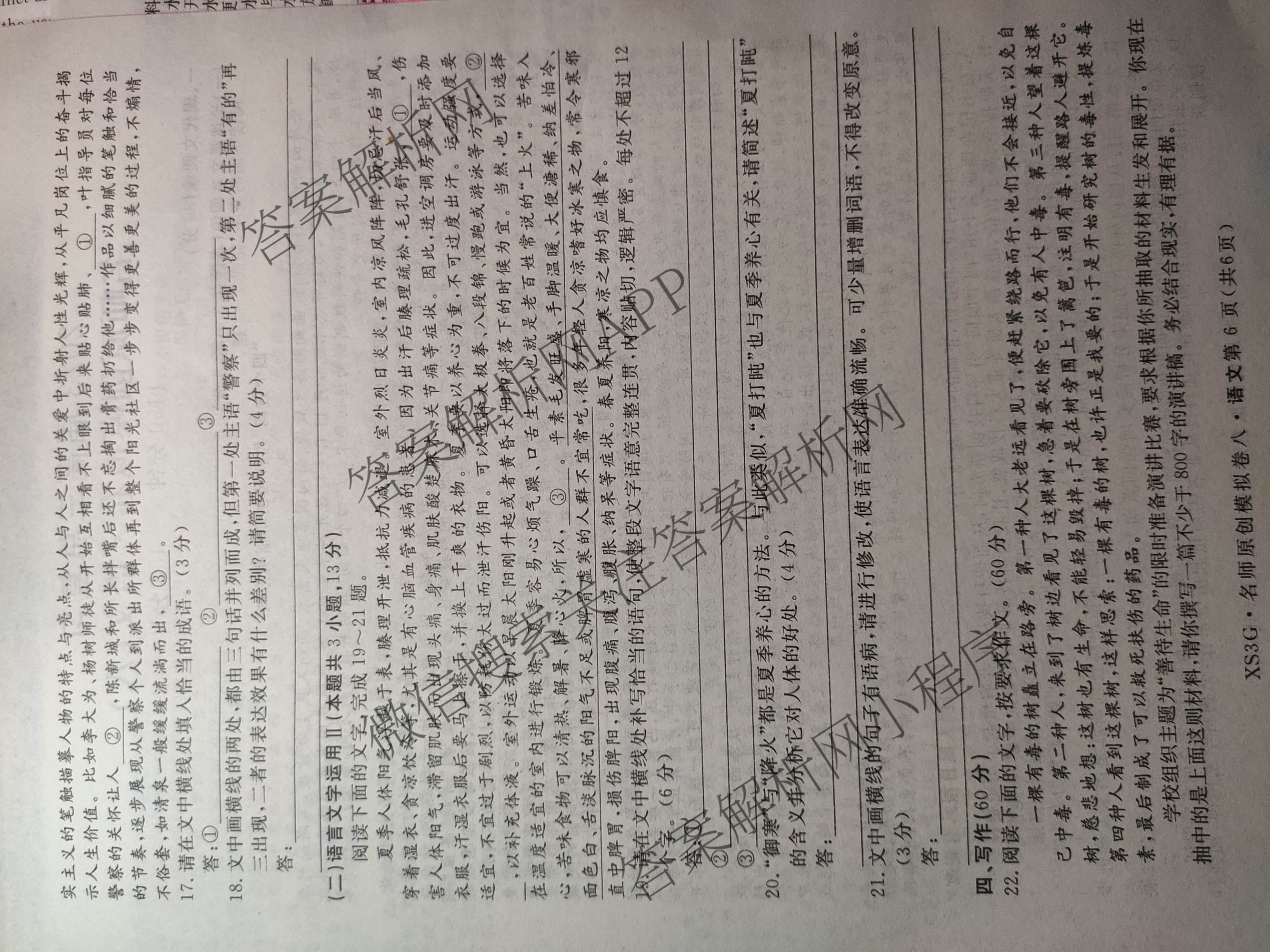 2023届高三总复习·XS3G名师原创模拟 语文(八)8试题,目前分科卷答案网已经汇总了2023届高三总复习·XS3G名师原创模拟 语文(八)8试题的各科答案和试卷,获取更多高三总复习·名师原创模拟答案解析,请在关注本站。