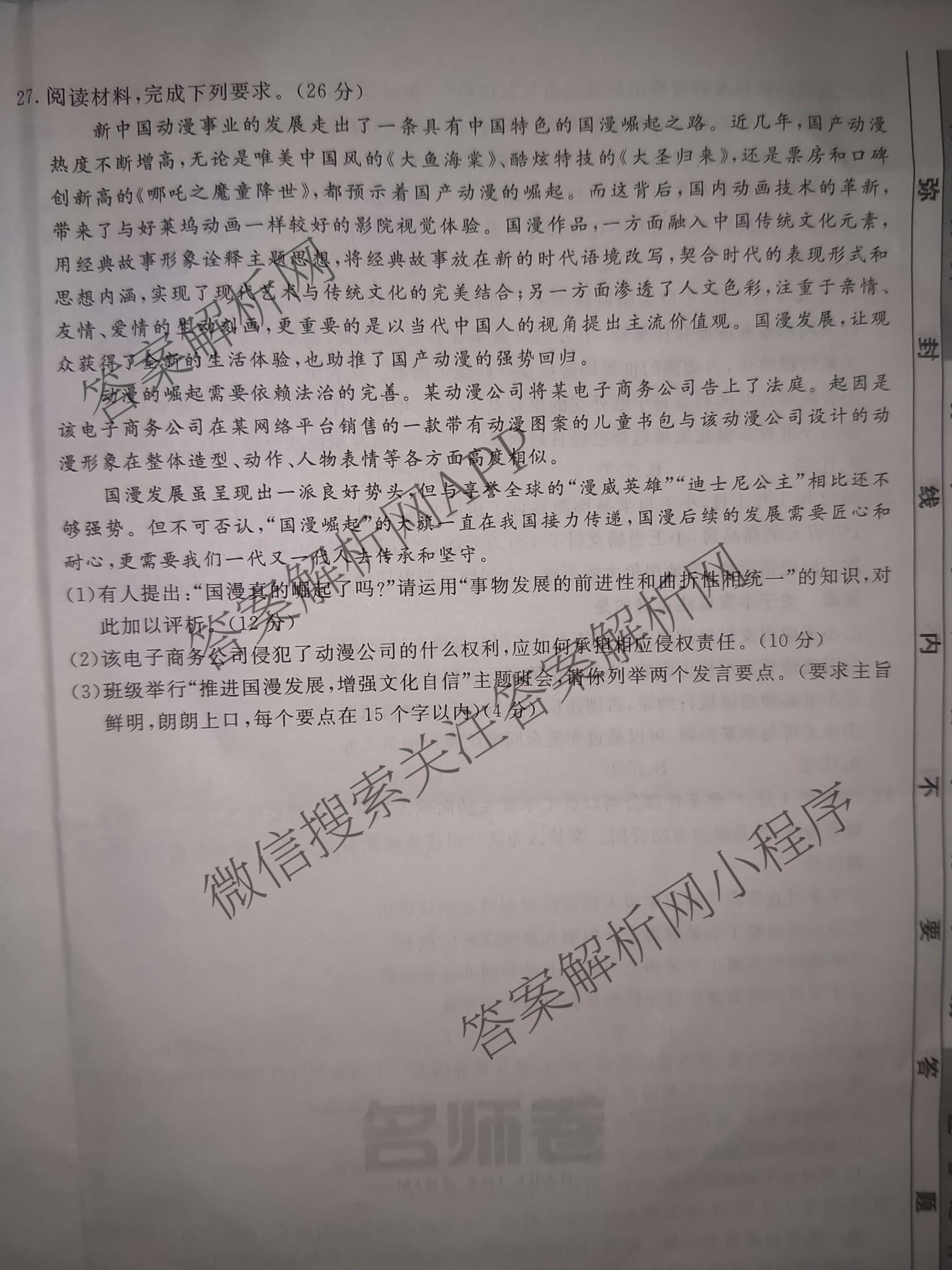 衡水名师卷·2022-2023学年度高三分科检测提分卷·151靶向提升(新教材)政治(三)3试题,目前分科卷答案网已经汇总了衡水名师卷·2022-2023学年度高三分科检测提分卷·151靶向提升(新教材)政治(三)3试题的各科答案和试卷,获取更多衡水名师卷答案解析,请在关注本站。