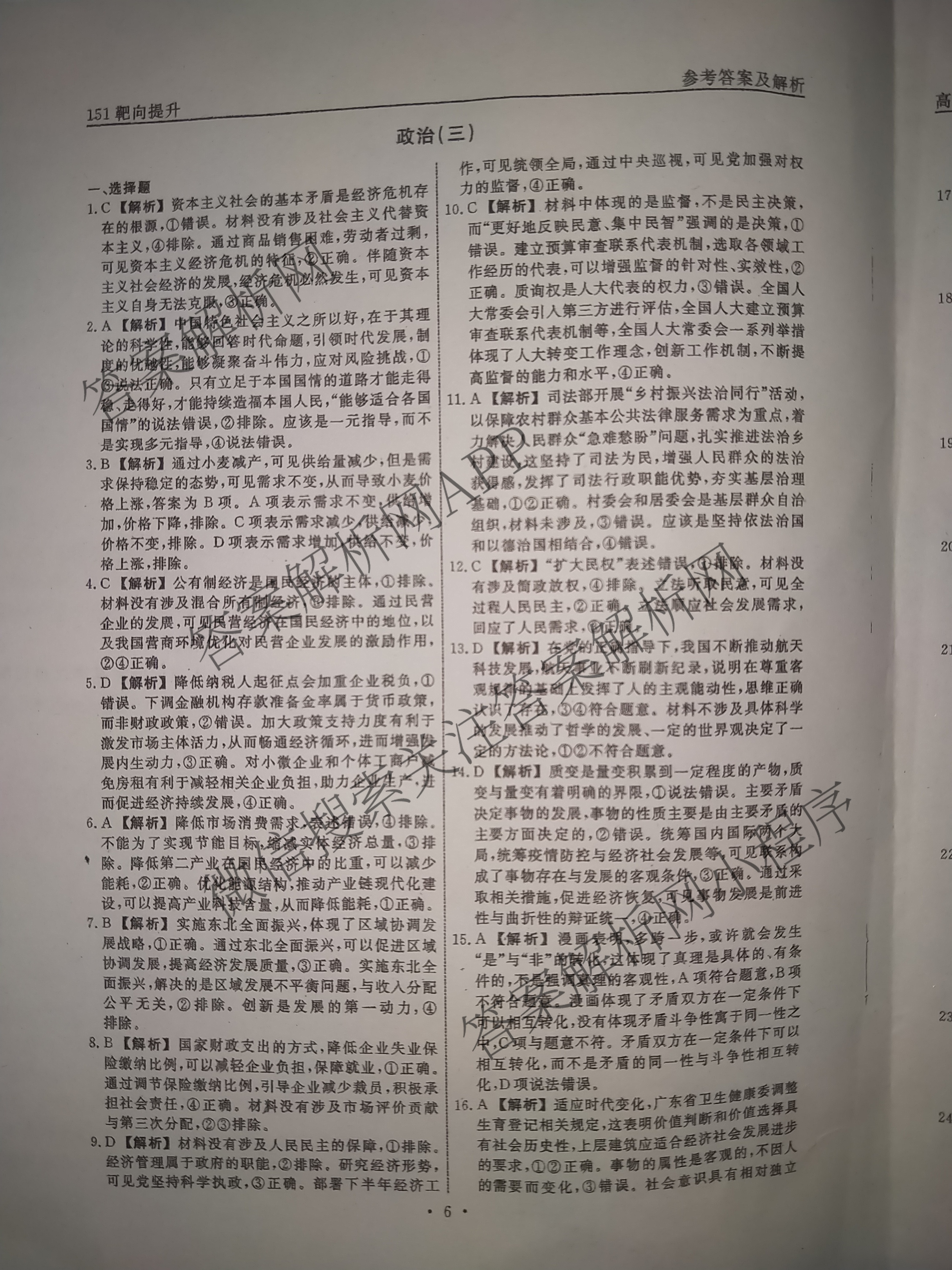- [高三](衡水名师卷)·2022-2023学年度分科检测提分卷·151靶向提升(老高考)政治(三)3答案