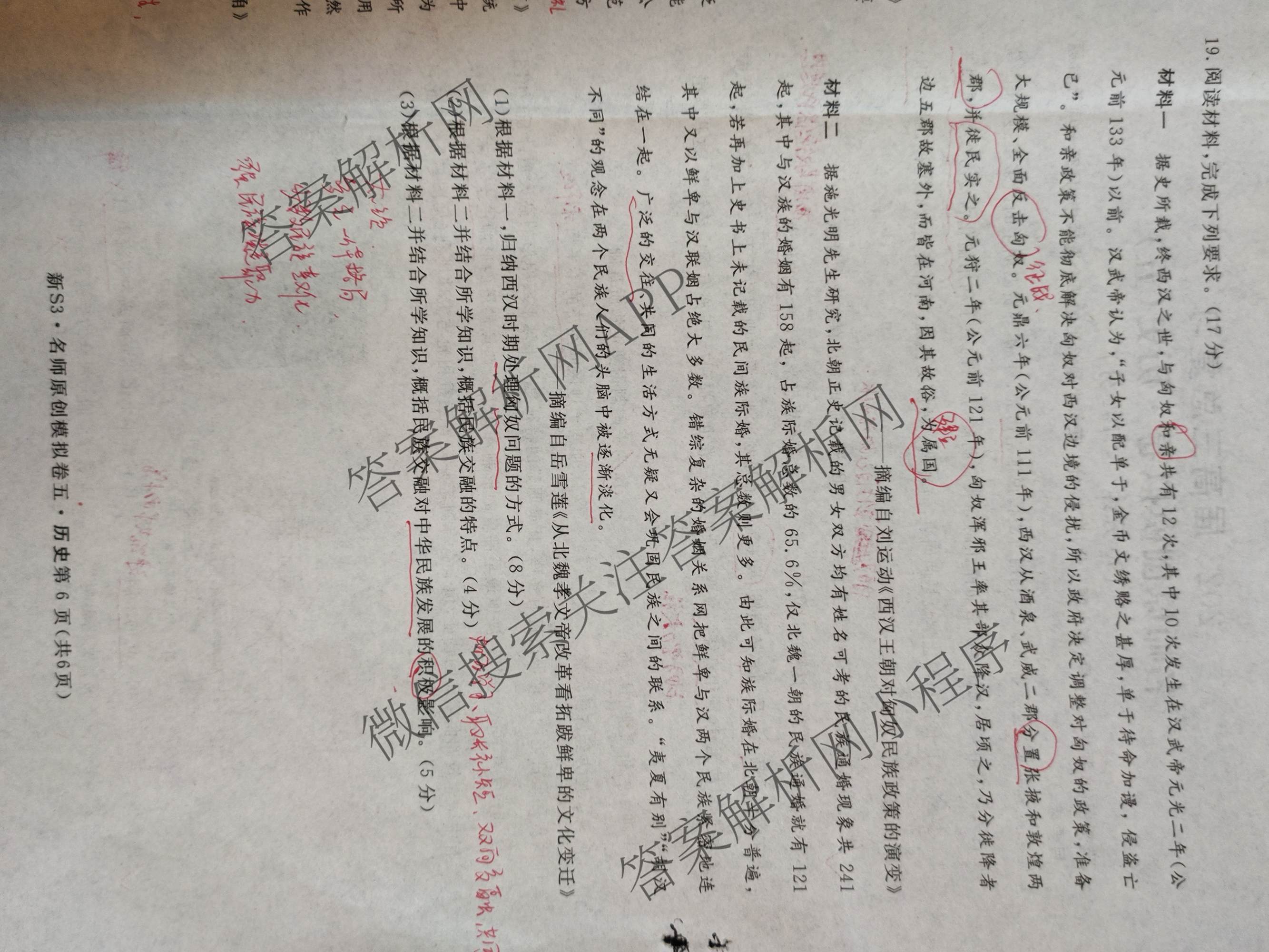 - (高三)2023届总复习S3名师原创模拟 历史(新S3)(五)5答案