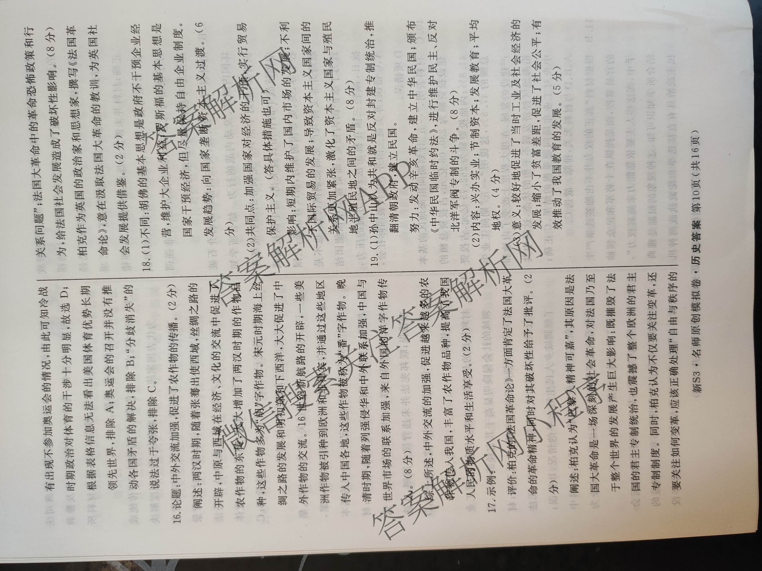 - 2023届(高三)总复习·S3名师原创模拟历史(四)4答案