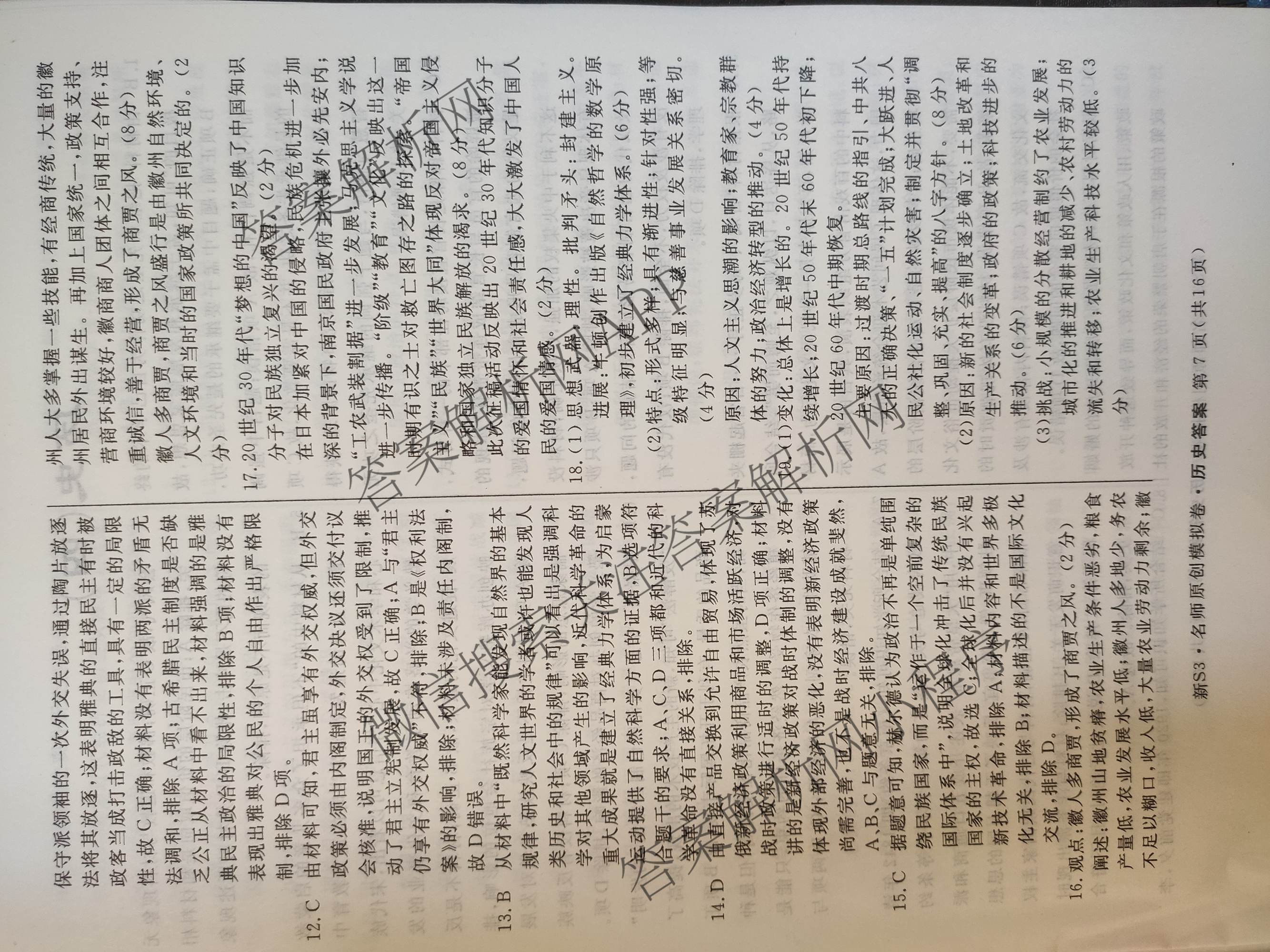 2023届高三总复习·S3名师原创模拟 历史(新S3)(三)3答案,目前分科卷答案网已经汇总了2023届高三总复习·S3名师原创模拟 历史(新S3)(三)3答案的各科答案和试卷,获取更多高三总复习·名师原创模拟答案解析,请在关注本站。