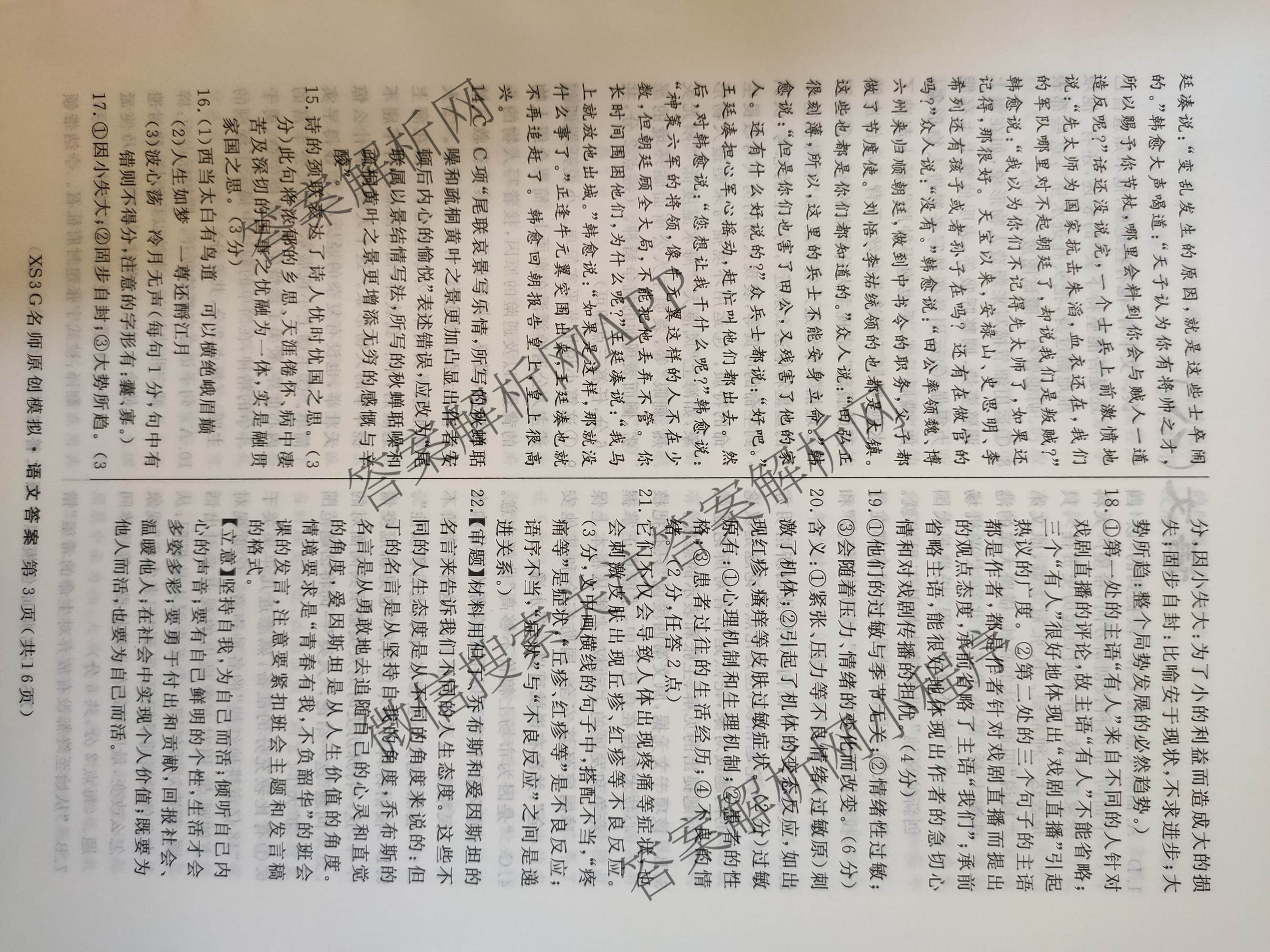 2023届高三总复习XS3G名师原创模拟 语文(七)7答案