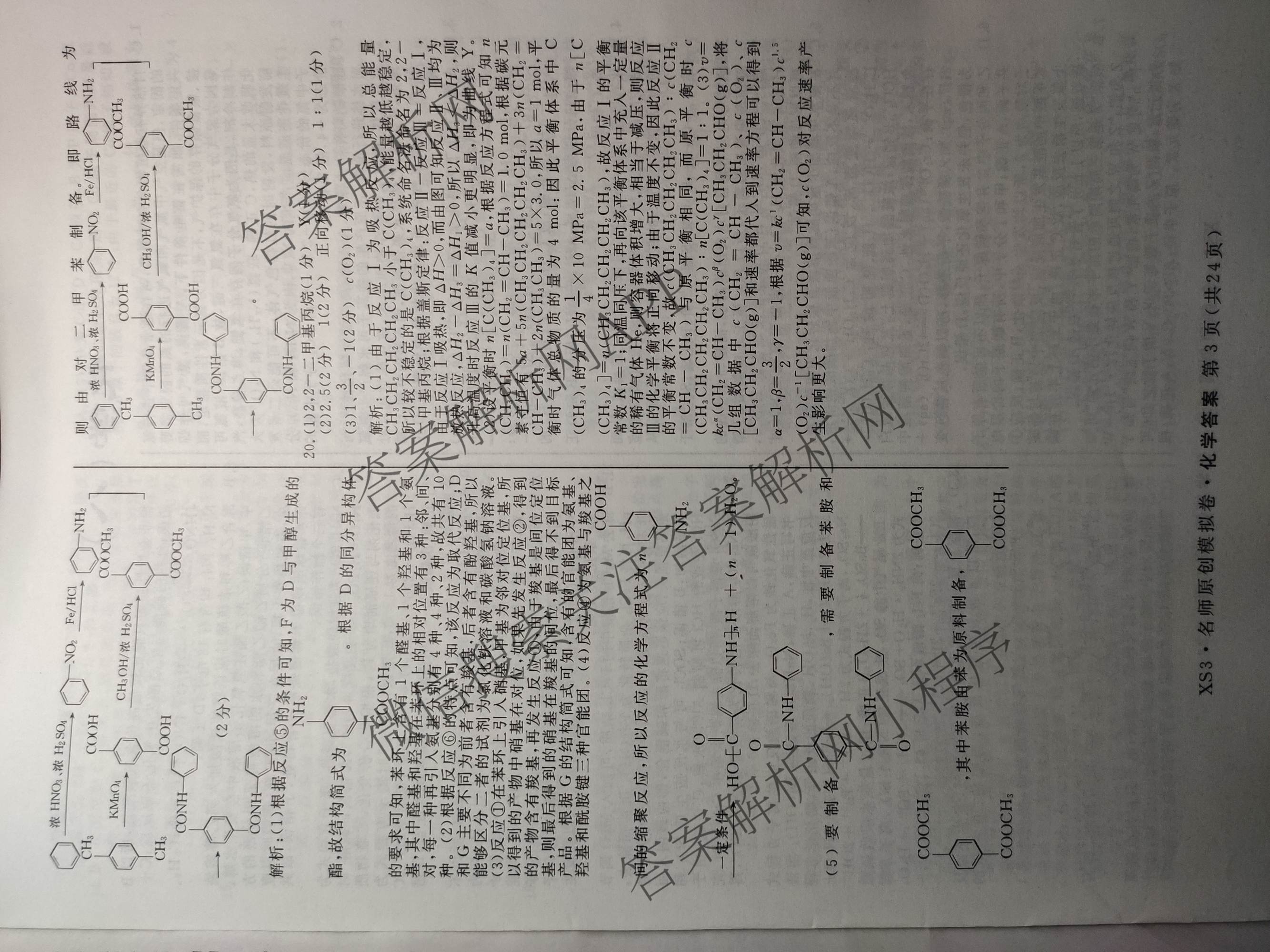 2023届高三总复习XS3名师原创模拟 化学 XS3(七)7答案