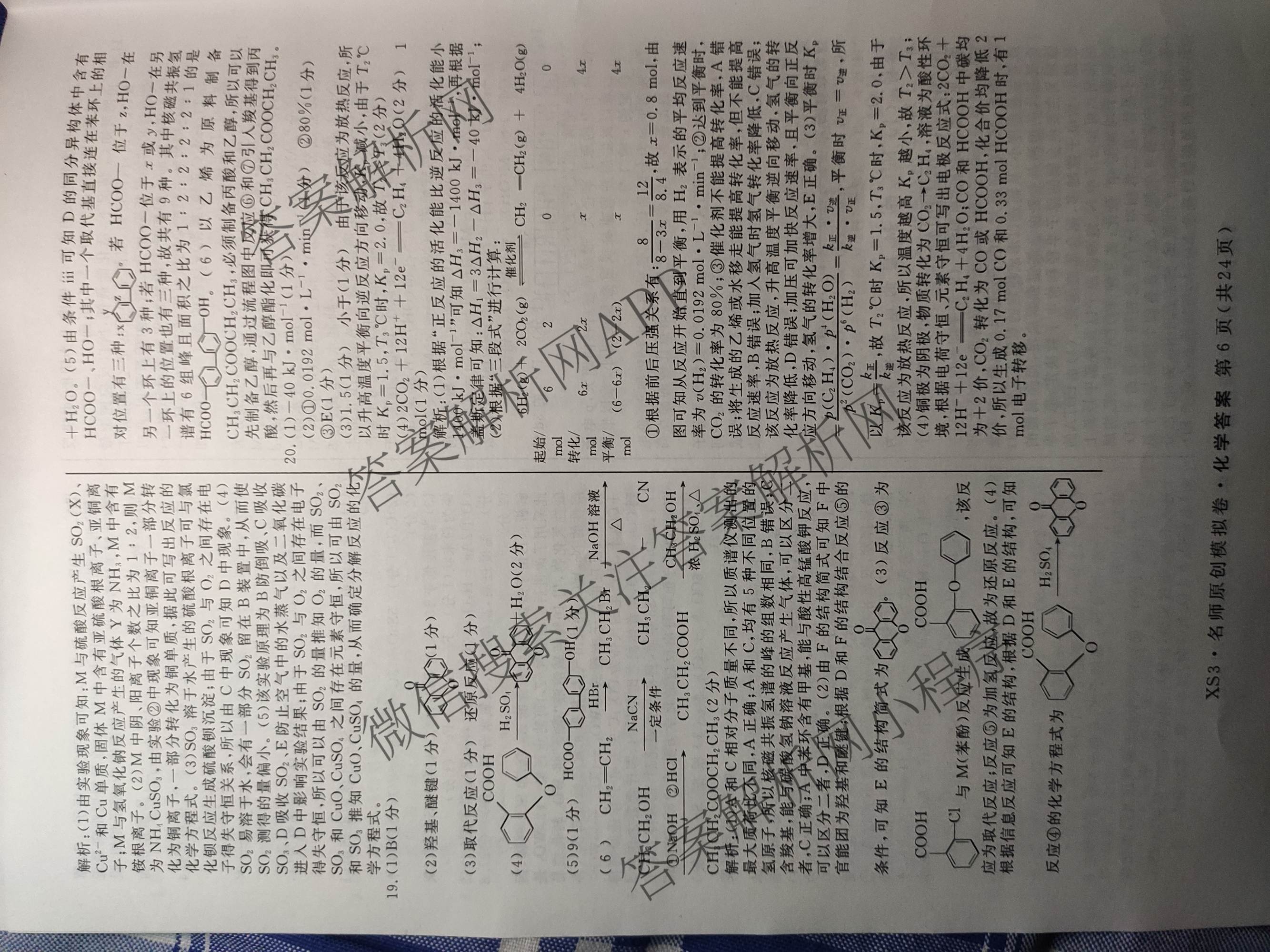 2023届高三总复习XS3名师原创模拟 化学 XS3(八)8答案