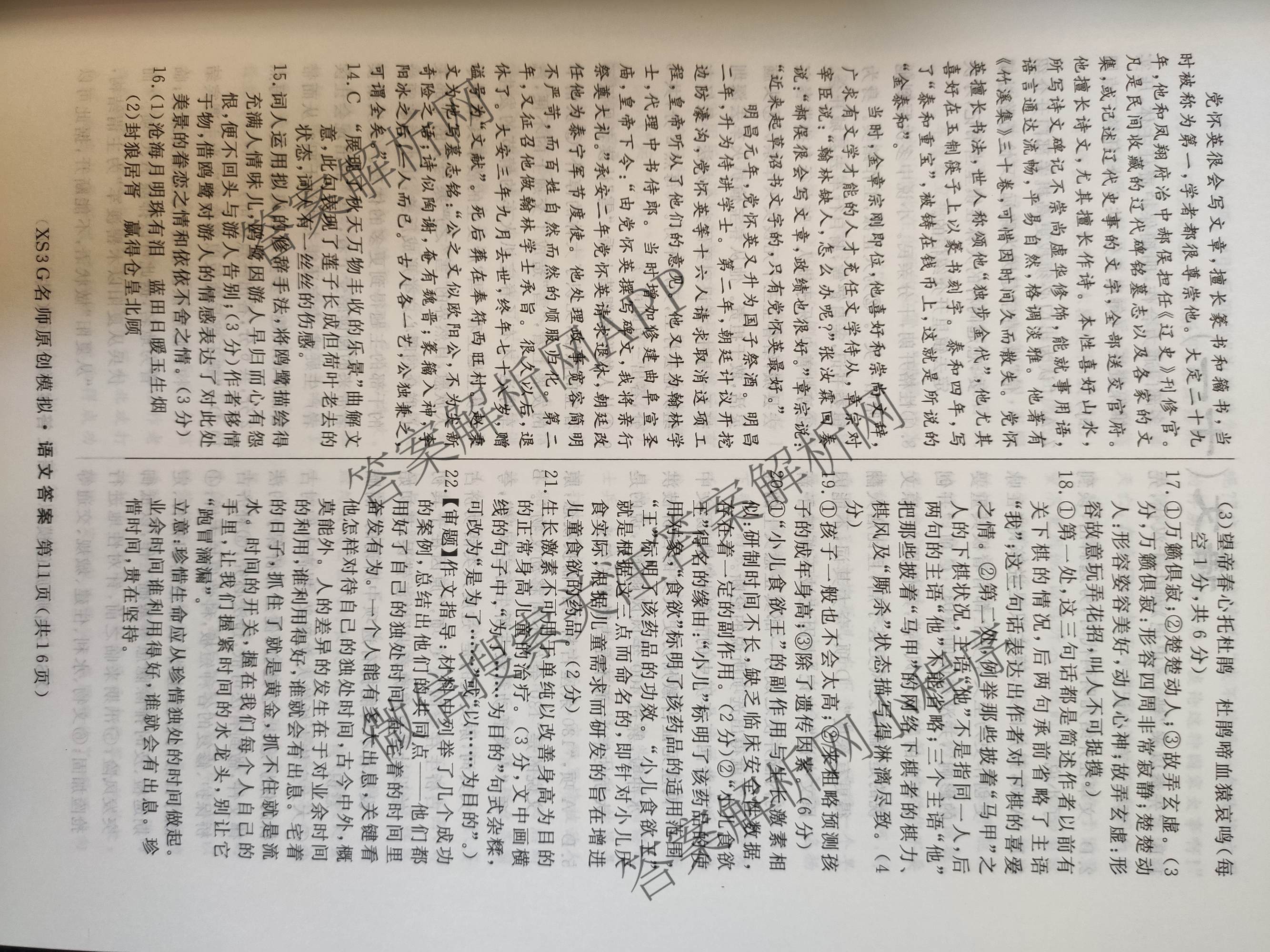2023届高三总复习XS3G名师原创模拟 语文(十)10答案