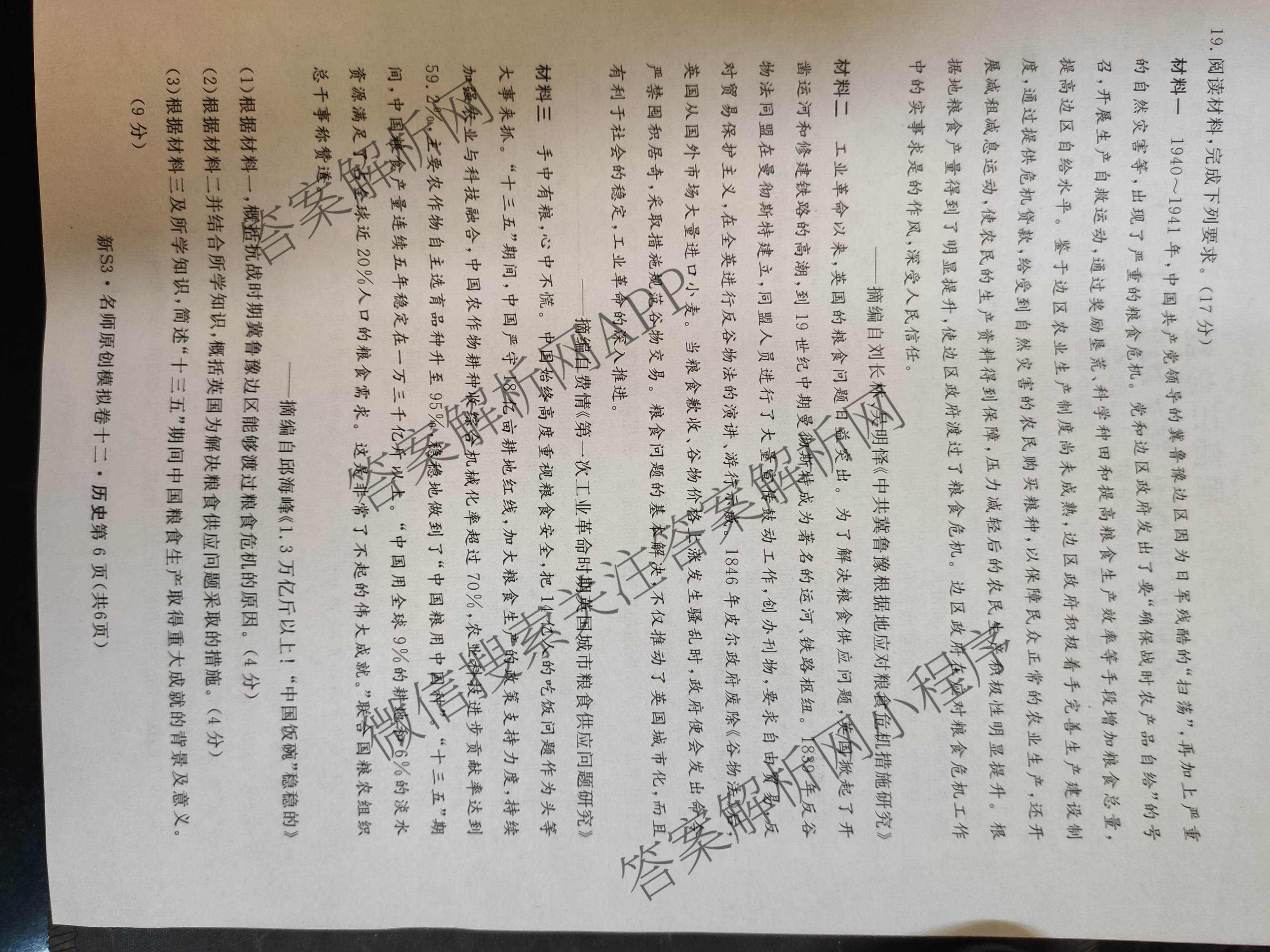 2023届高三总复习·S3名师原创模拟 历史(新S3)(十二)12试题,目前分科卷答案网已经汇总了2023届高三总复习·S3名师原创模拟 历史(新S3)(十二)12试题的各科答案和试卷,获取更多高三总复习·名师原创模拟答案解析,请在关注本站。