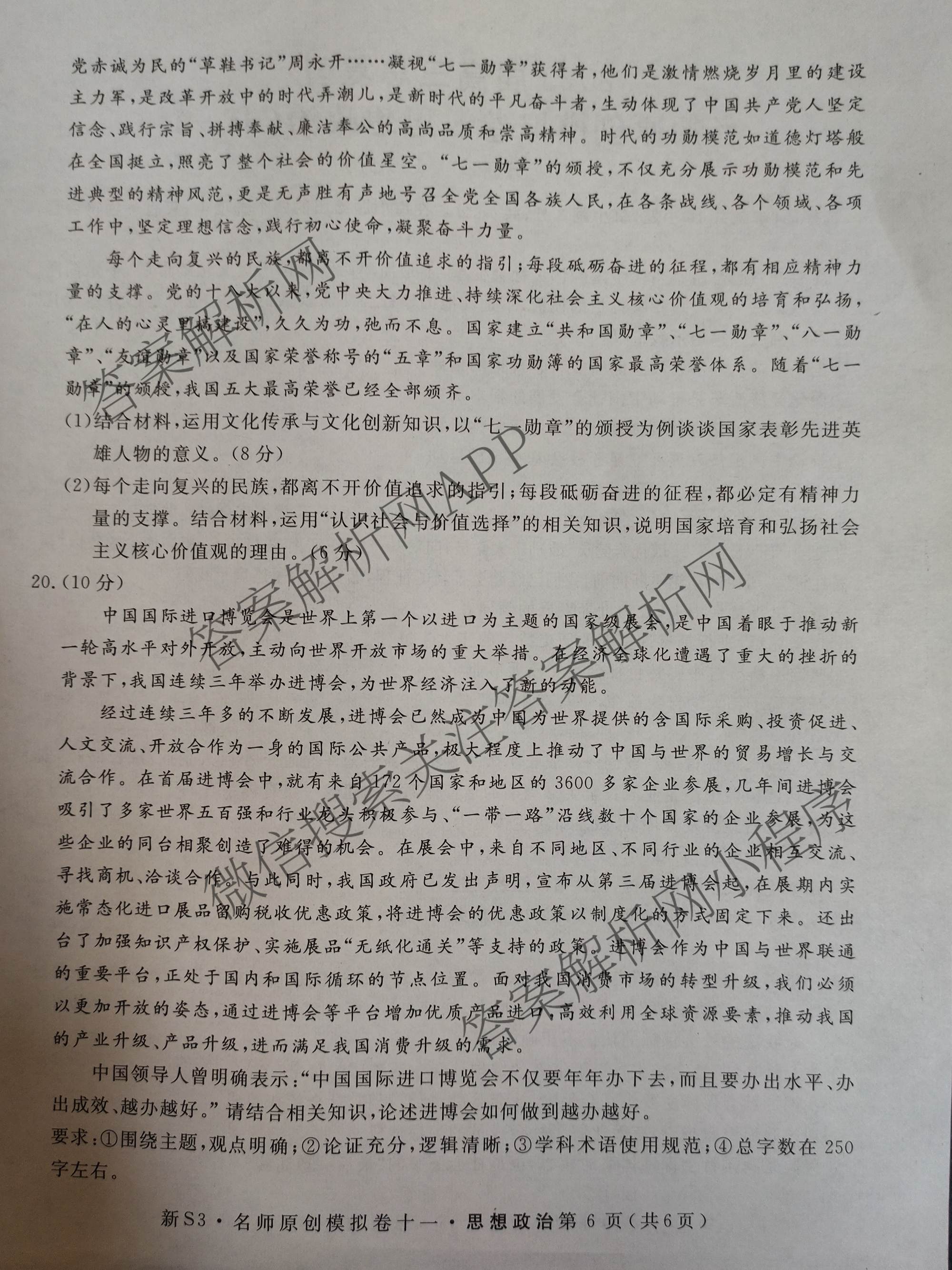 2023届高三总复习·S3名师原创模拟 政治(新S3)(十一)11试题,目前分科卷答案网已经汇总了2023届高三总复习·S3名师原创模拟 政治(新S3)(十一)11试题的各科答案和试卷,获取更多高三总复习·名师原创模拟答案解析,请在关注本站。