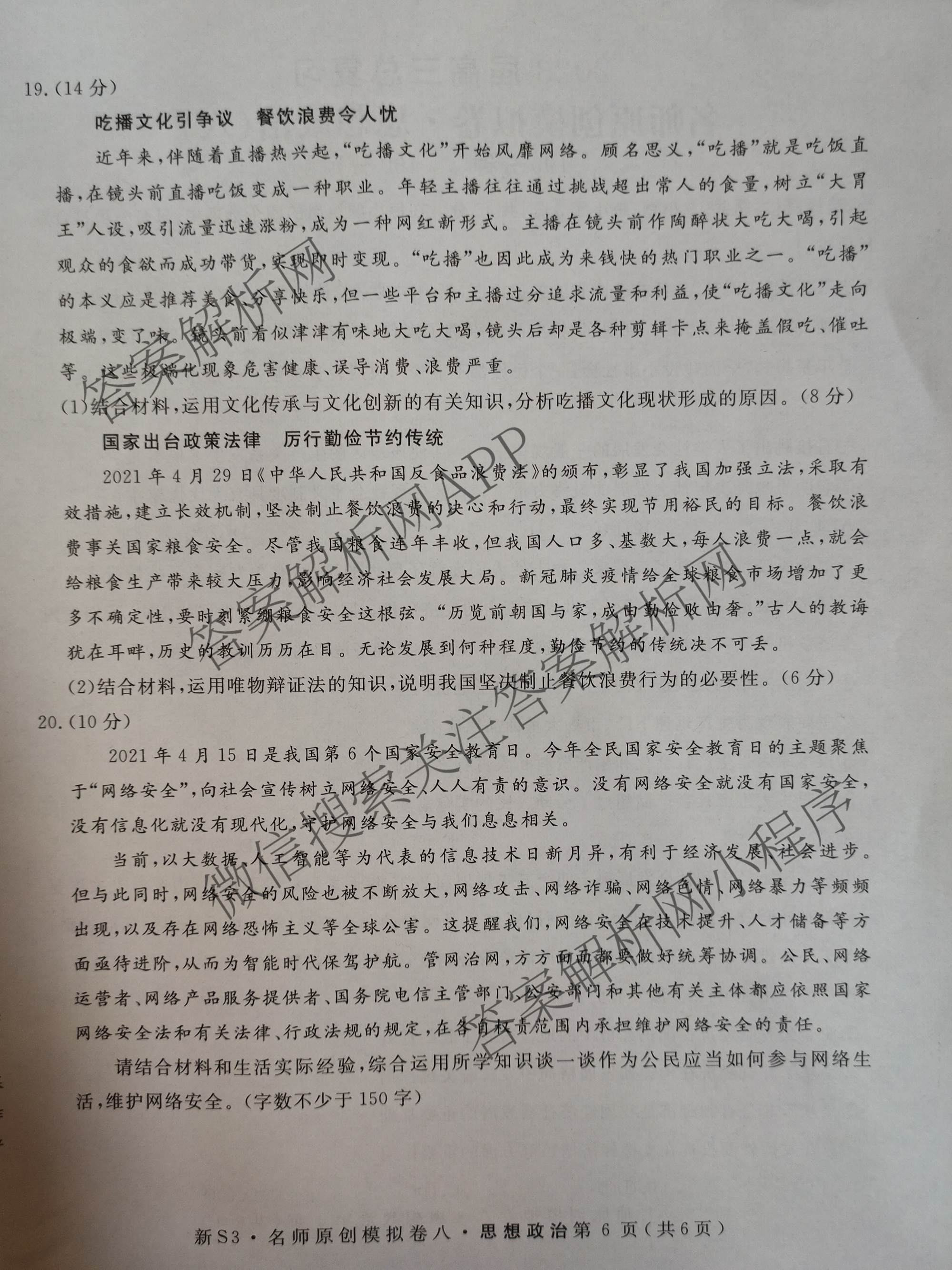 2023届高三总复习S3名师原创模拟 政治(新S3)(八)8试题
