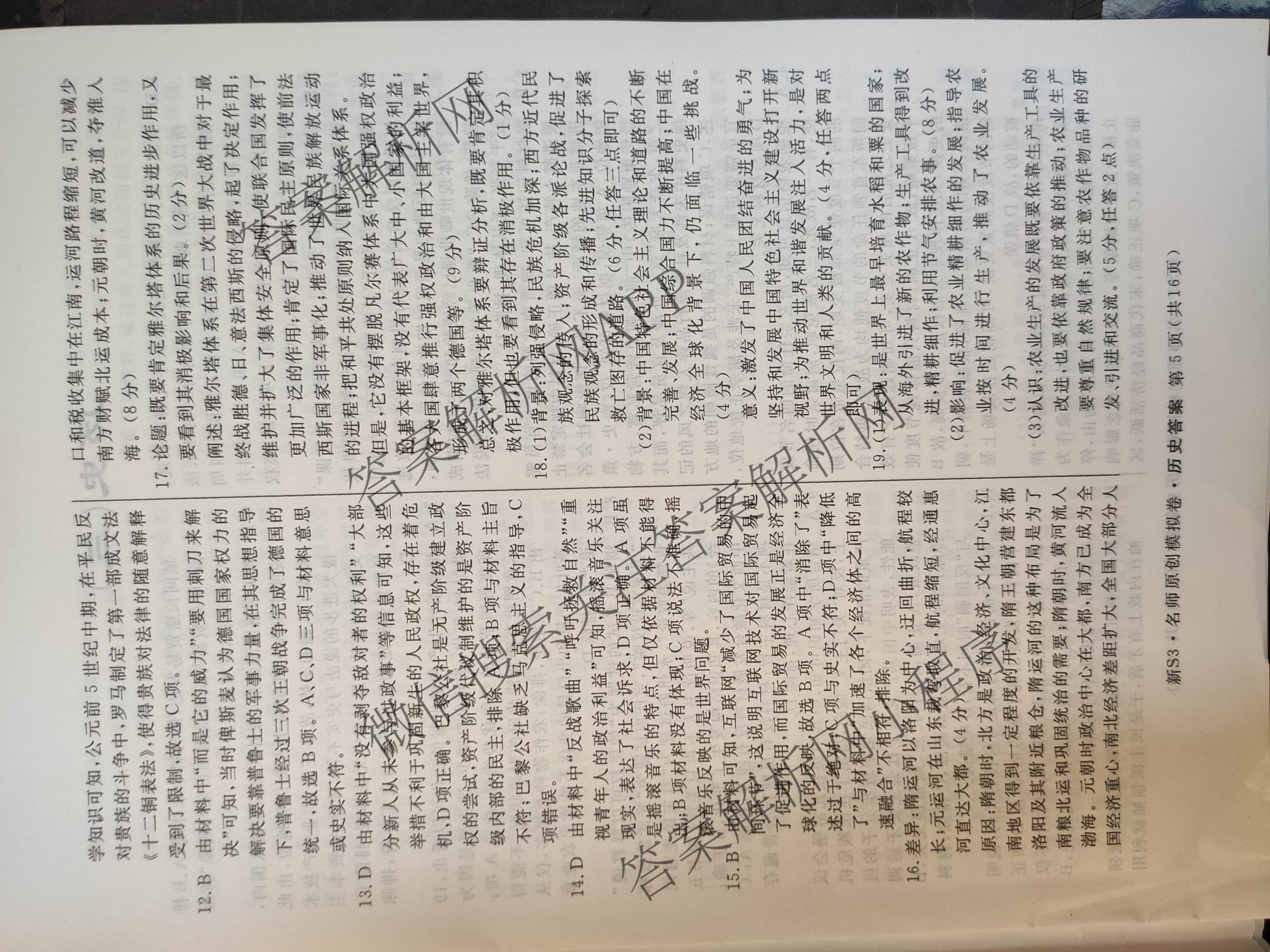 2023届[高三]总复习S3名师原创模拟 历史(新S3)(二)2答案