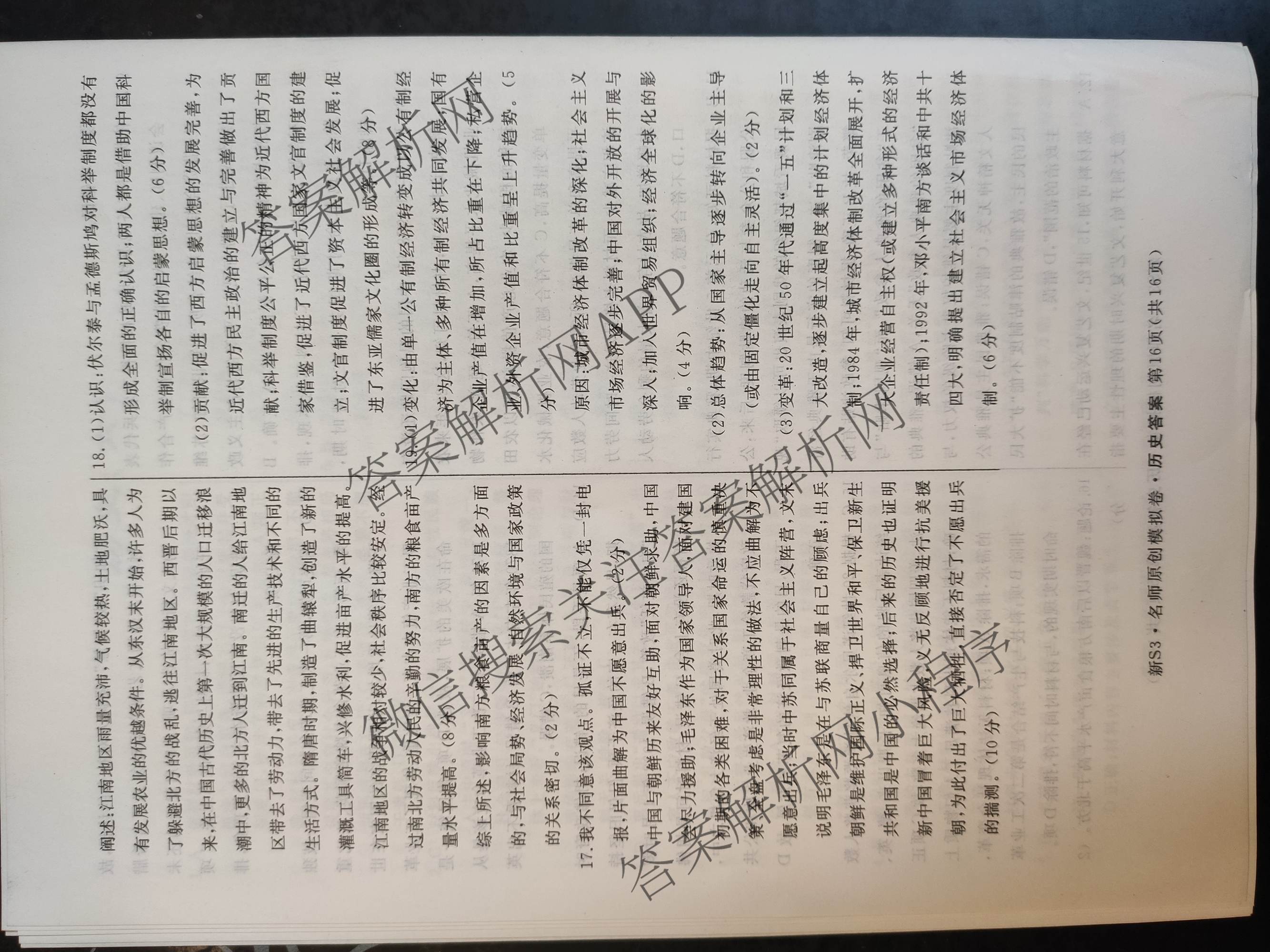 - 2023届[高三]总复习S3名师原创模拟 历史(新S3)(六)6答案