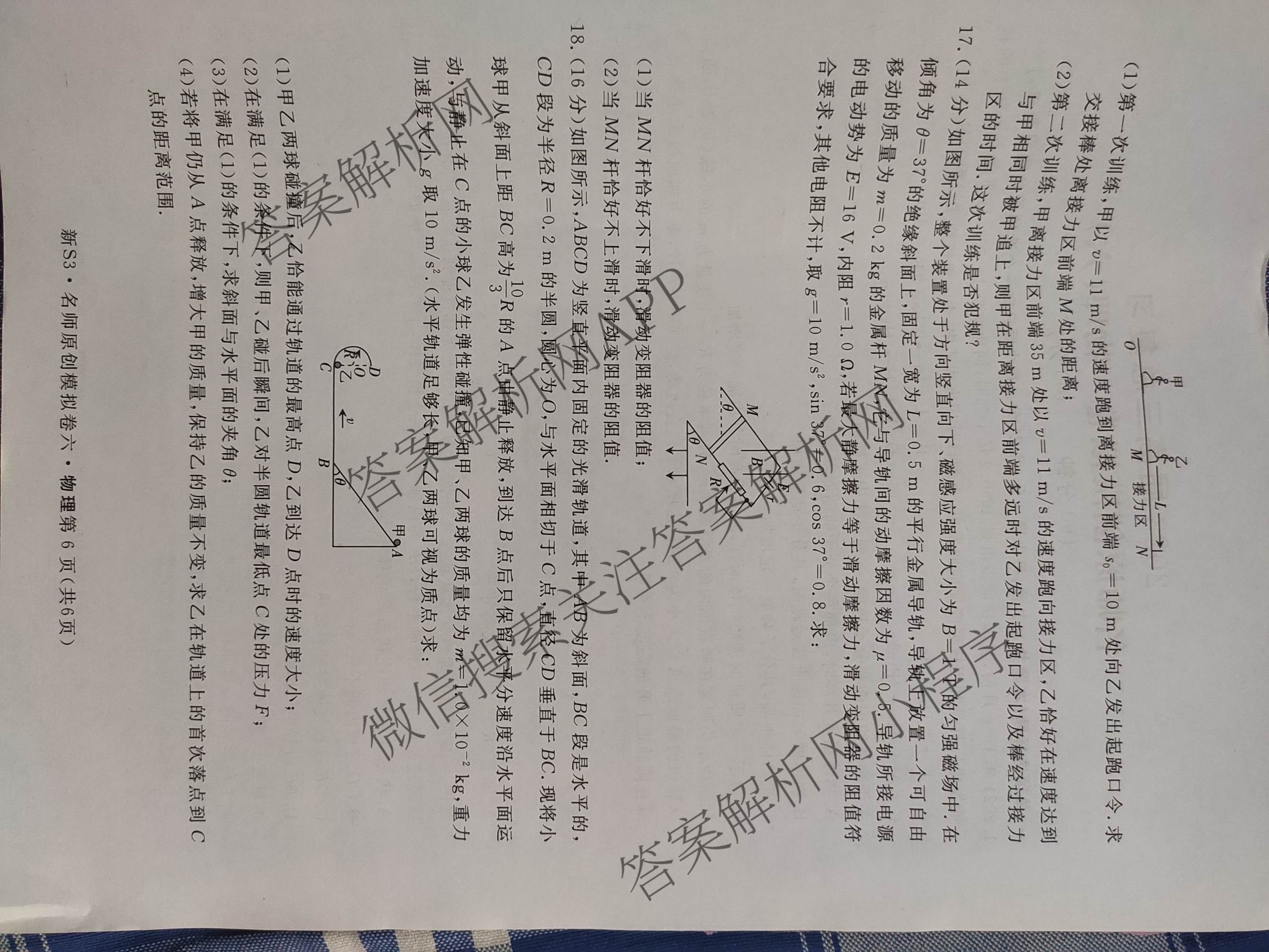 - 2023届[高三]总复习·新S3名师原创模拟物理(六)6答案