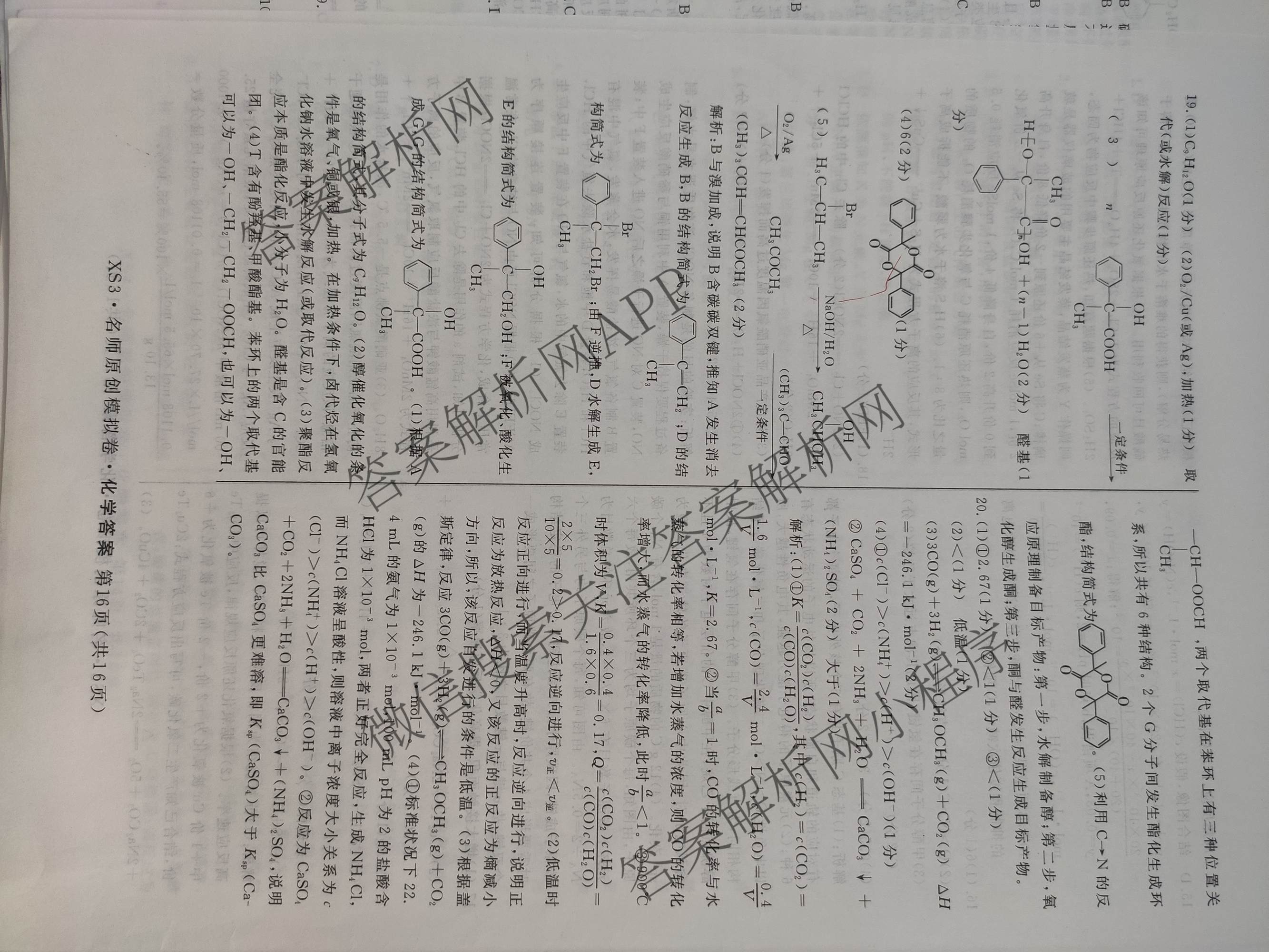 2023届高三总复习·XS3名师原创模拟 化学 XS3(六)6答案,目前分科卷答案网已经汇总了2023届高三总复习·XS3名师原创模拟 化学 XS3(六)6答案的各科答案和试卷,获取更多高三总复习·名师原创模拟答案解析,请在关注本站。