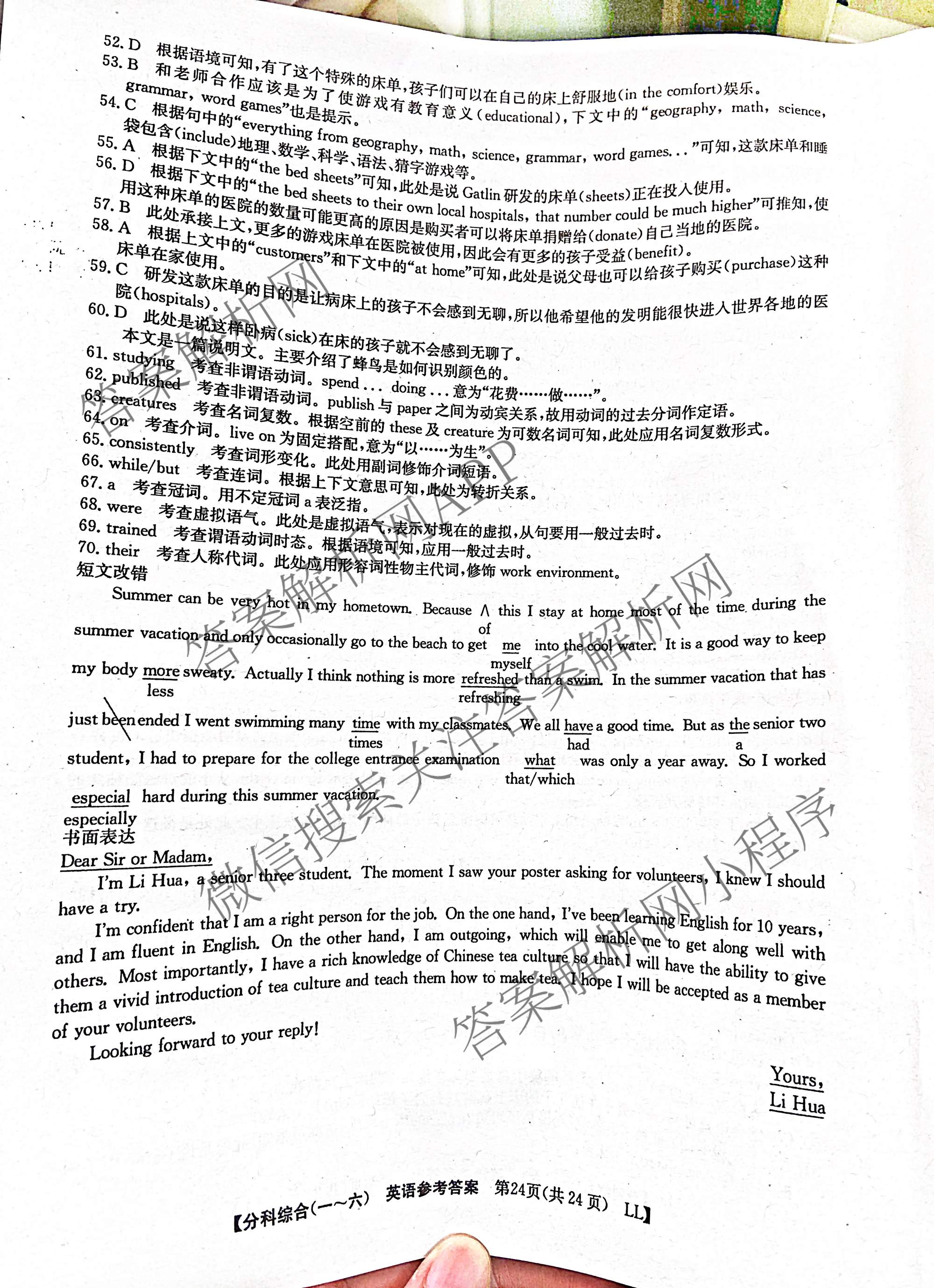2023(全国高考分科综合卷) 英语 LL (六)6答案