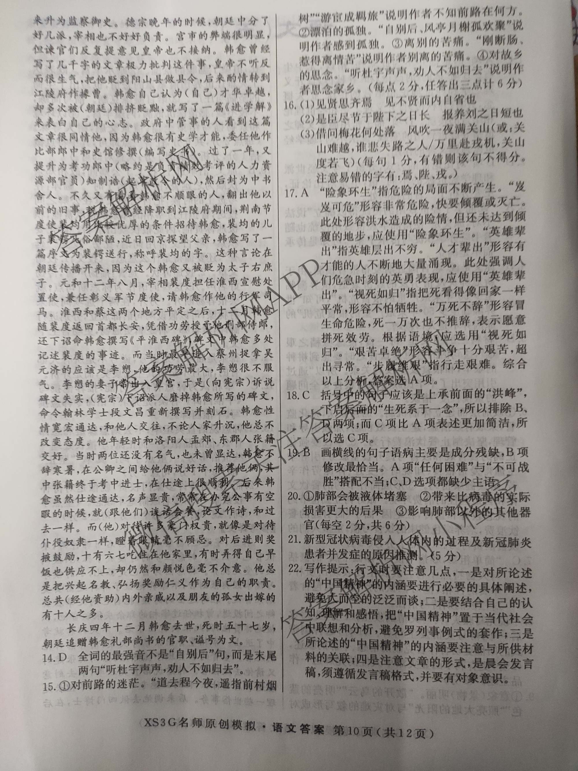 2023届[高三]总复习XS3G名师原创模拟 语文(五)5答案