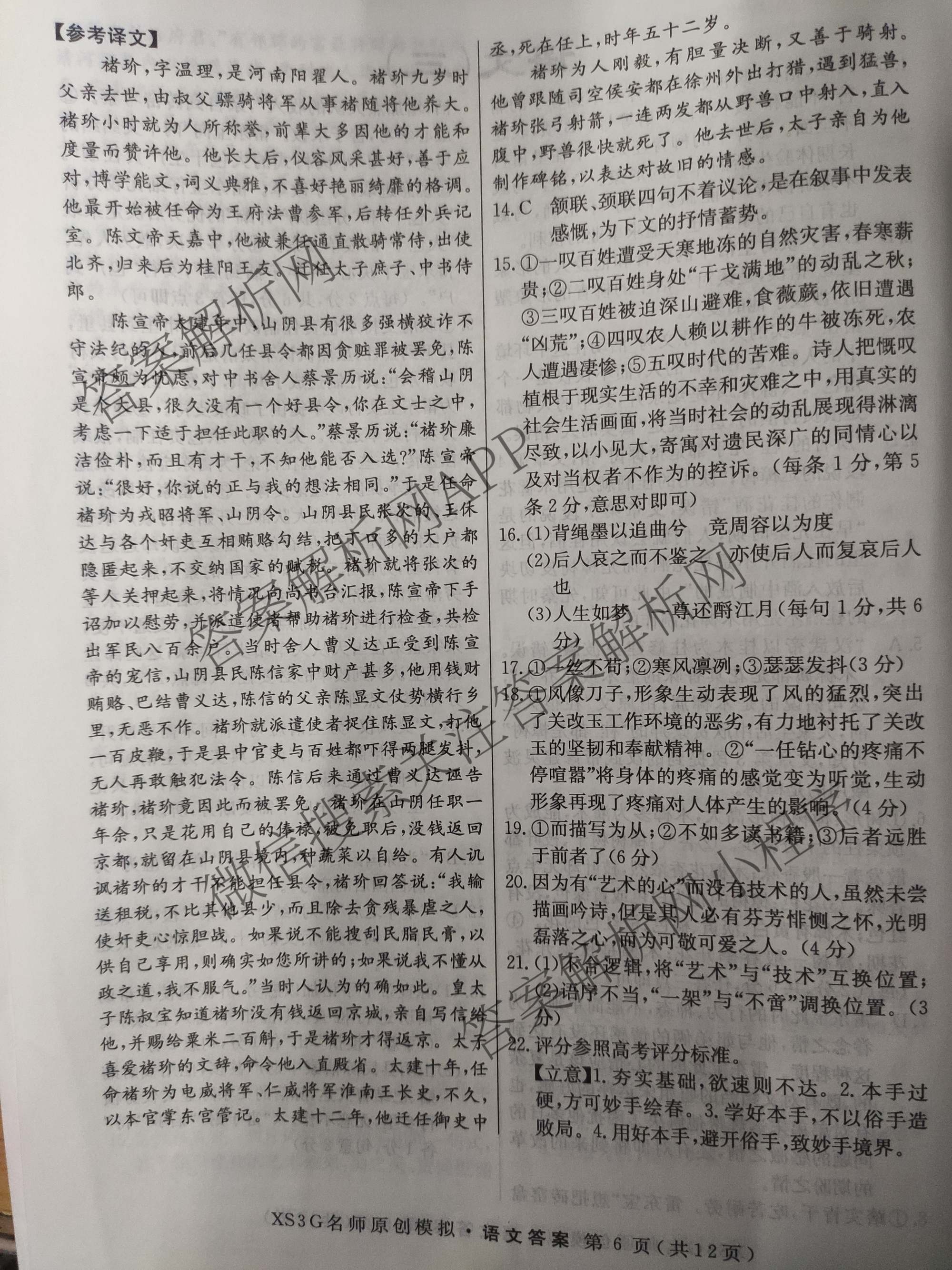 [高三]2023届总复习·XS3G名师原创模拟 语文(三)3答案