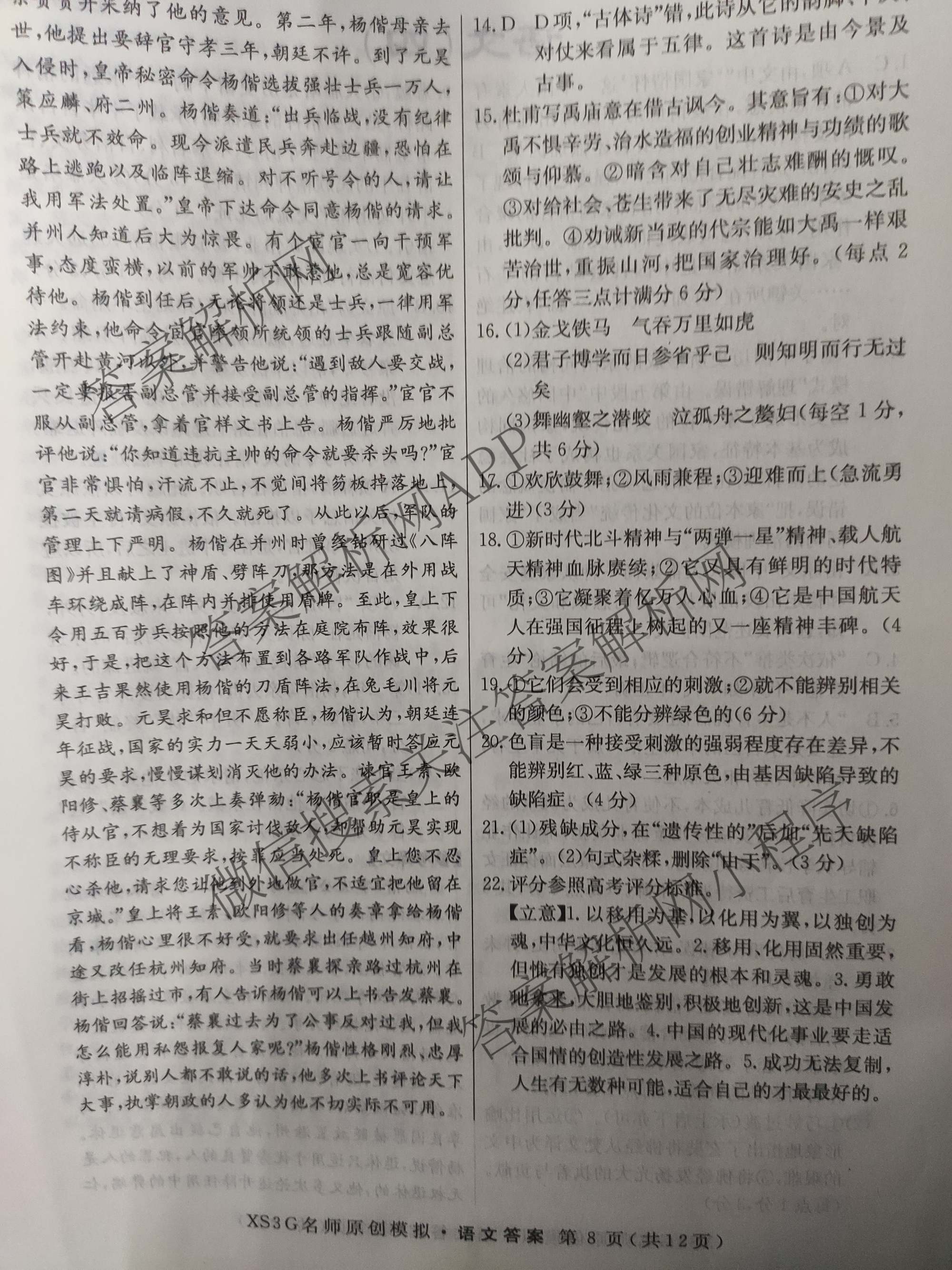 - [高三]2023届总复习XS3G名师原创模拟 语文(四)4答案