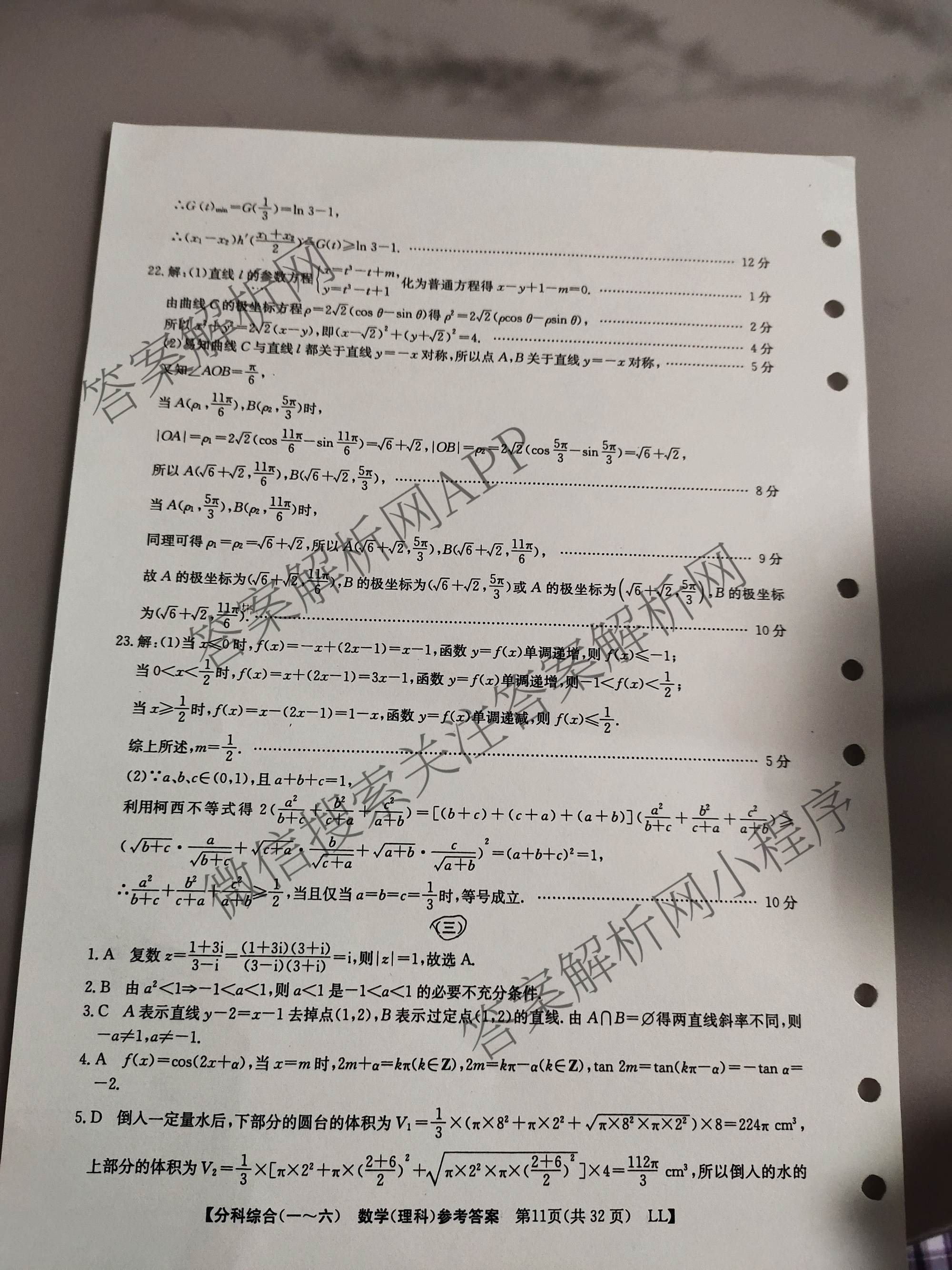 - [高三]2023全国高考分科综合卷 理数 LL (二)2答案