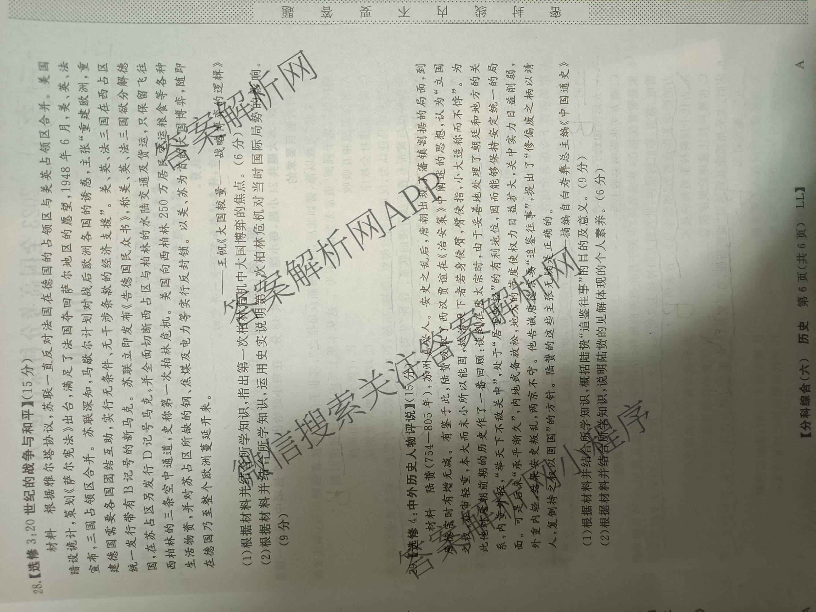 - (高三)2023[全国高考分科综合卷] 历史 LL A(六)6试题