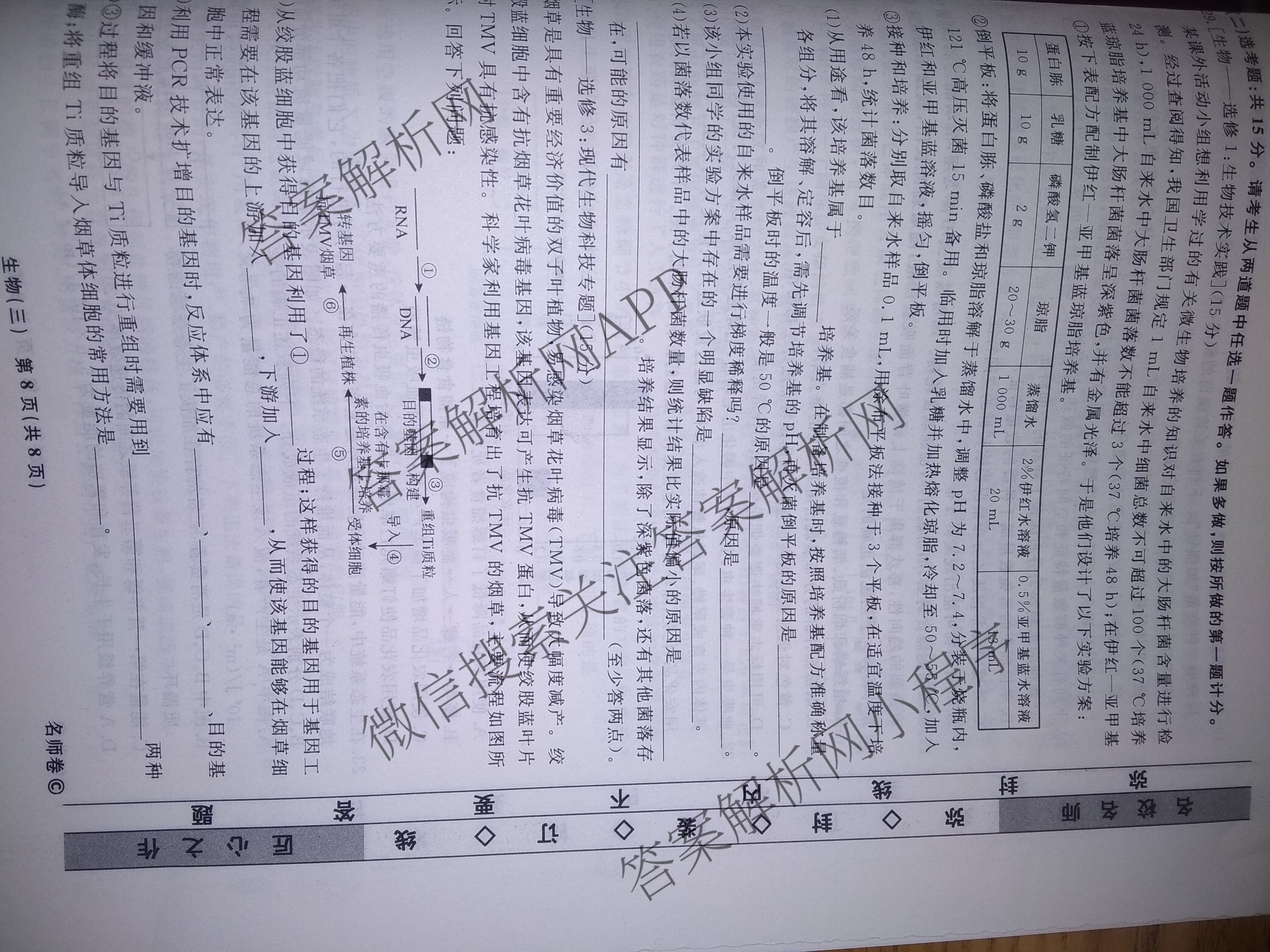 衡水名师卷·2022-2023学年度高三分科检测提分卷·151靶向提升(老高考)生物(三)3试题,目前分科卷答案网已经汇总了衡水名师卷·2022-2023学年度高三分科检测提分卷·151靶向提升(老高考)生物(三)3试题的各科答案和试卷,获取更多衡水名师卷答案解析,请在关注本站。