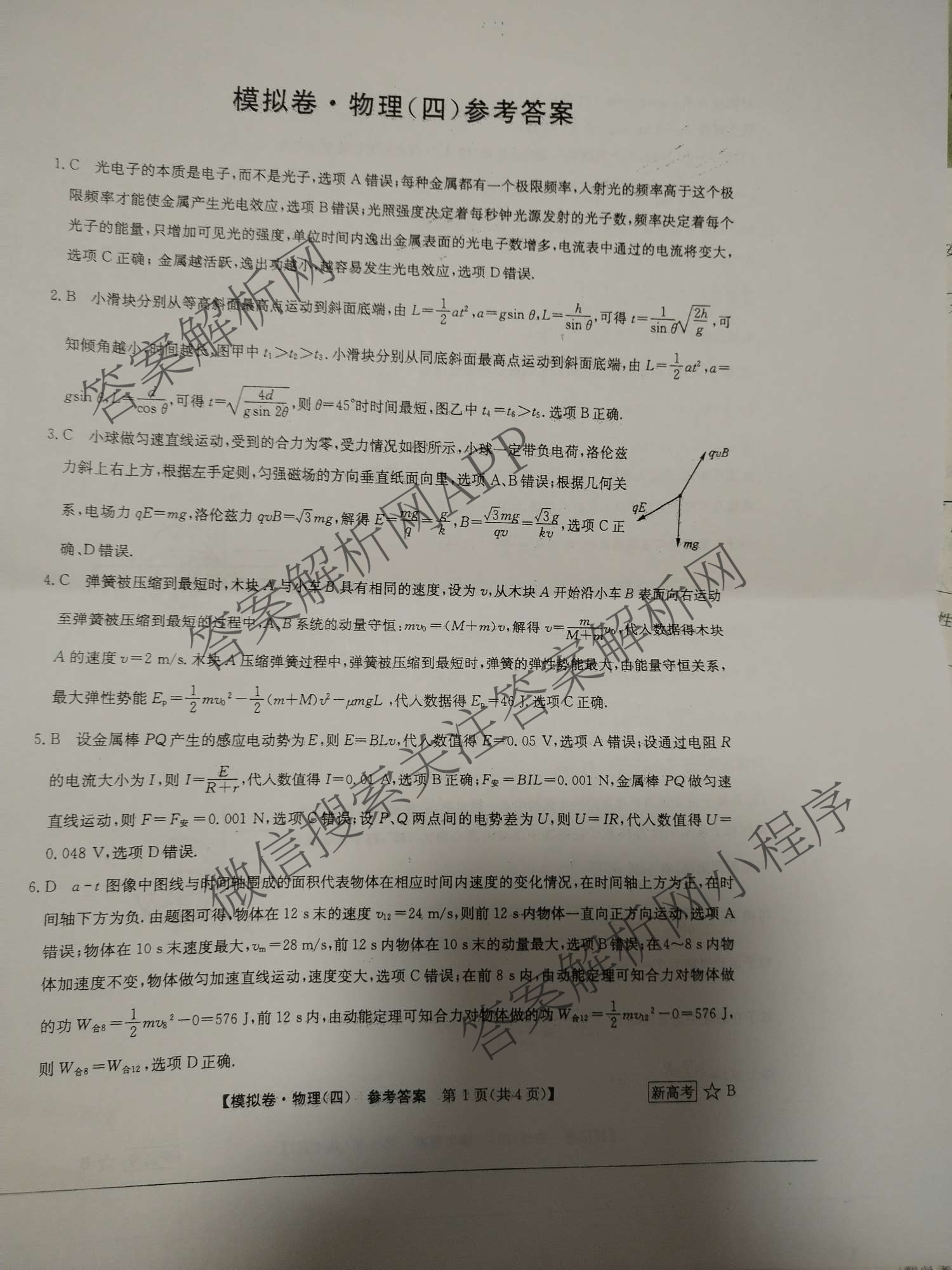 - [高三]2023届全国新高考分科综合模拟测试卷 物理 新高考☆(四)4答案